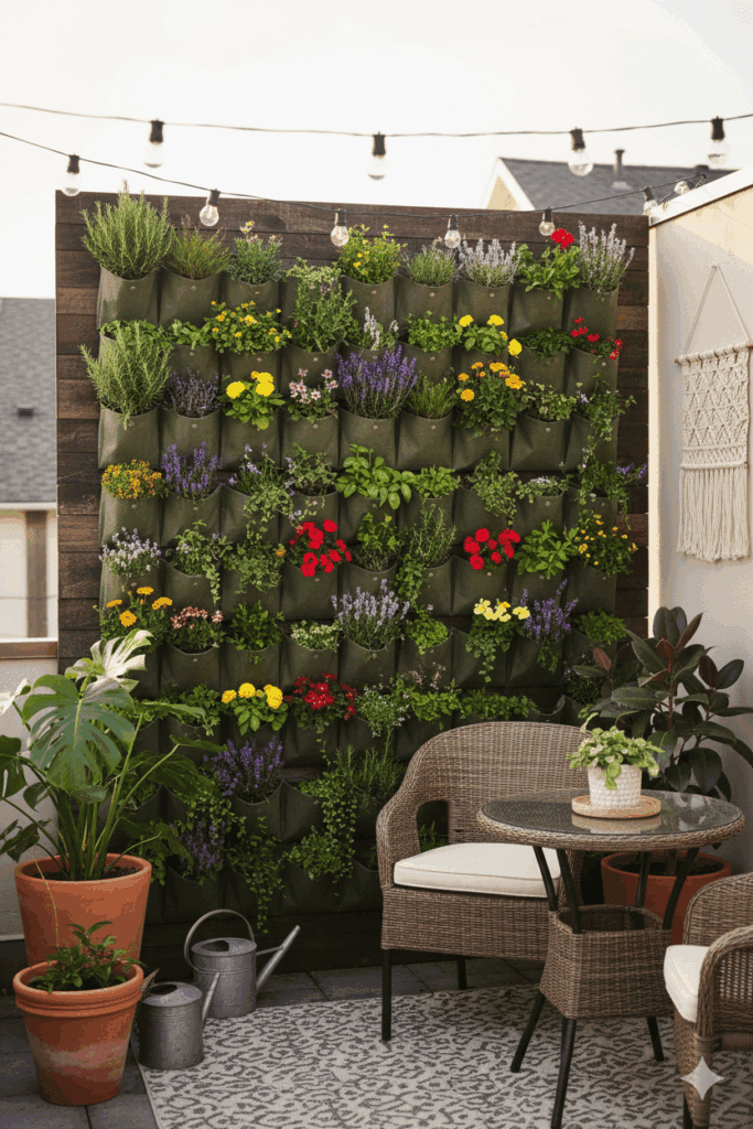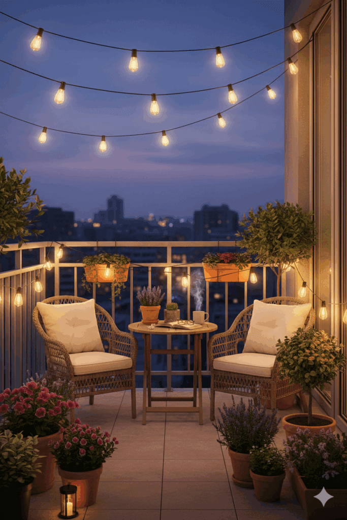 String lights aren’t just for aesthetics—they also serve a practical purpose by extending the usability of your outdoor space into the evening hours. And in smaller areas, lighting plays an even more important role. Since you’re working with limited space, your design choices have to do double duty. A well-placed set of soft-glow LED lights creates ambiance, adds warmth, and highlights key features like your vertical garden or herb planter setup—all without taking up a single square inch of floor space.
