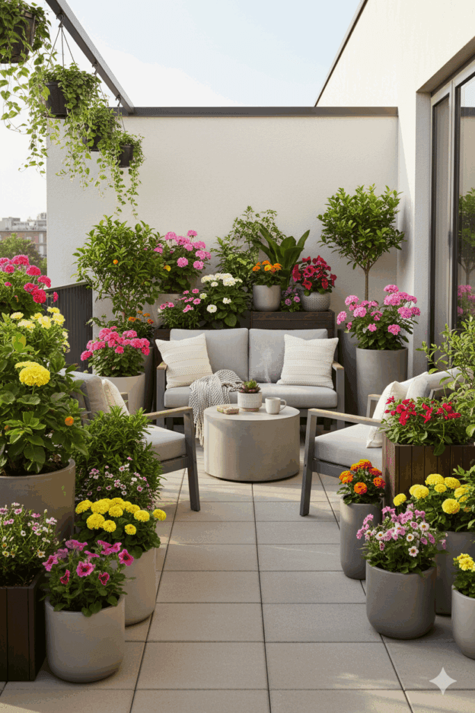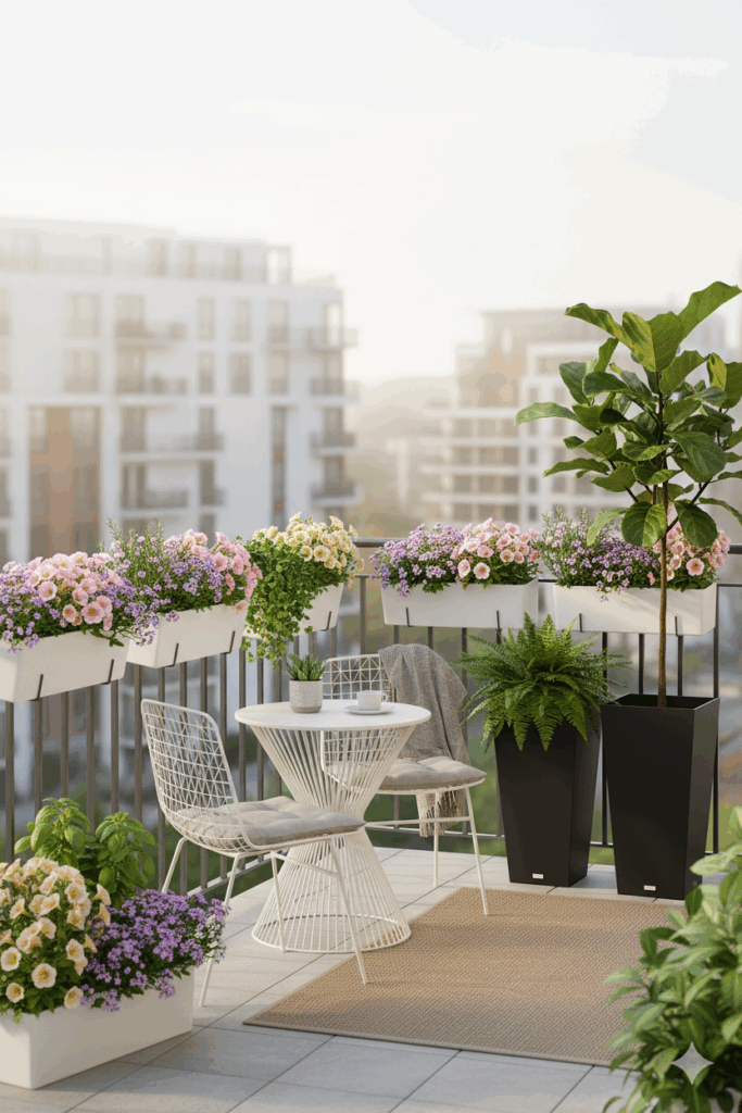 For a cohesive and polished look, consider sticking to a neutral color palette or a consistent texture across your containers. Coordinating planters with other elements—like your balcony railing planters or vertical garden trellis—can help the space feel well-designed and intentional, even if it’s just a few square meters.