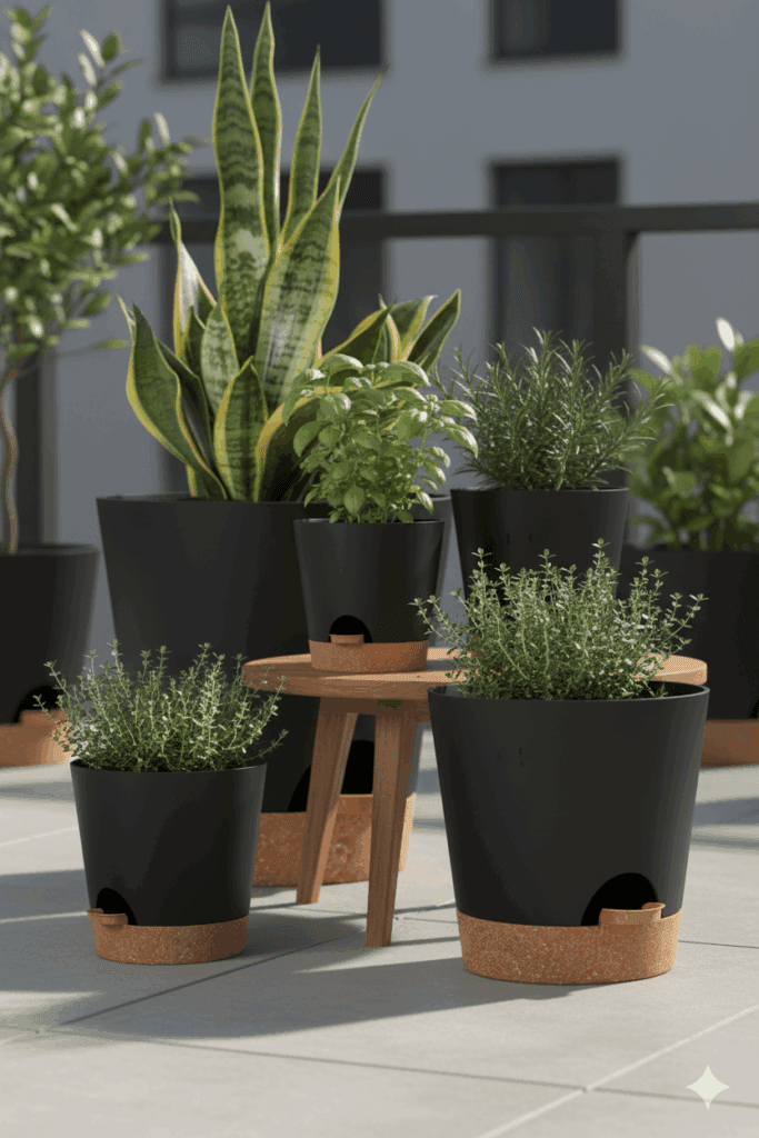 Self-watering pots work by using a simple water reservoir system that allows plants to absorb moisture as needed through capillary action. This keeps the soil consistently hydrated without the risk of overwatering or underwatering—two of the most common causes of plant stress. For balcony garden setups, where drainage can be tricky and water spills can be messy, self-watering containers offer a clean and efficient solution. You won’t have to worry about staining your patio tiles or over-saturating your railing planters.