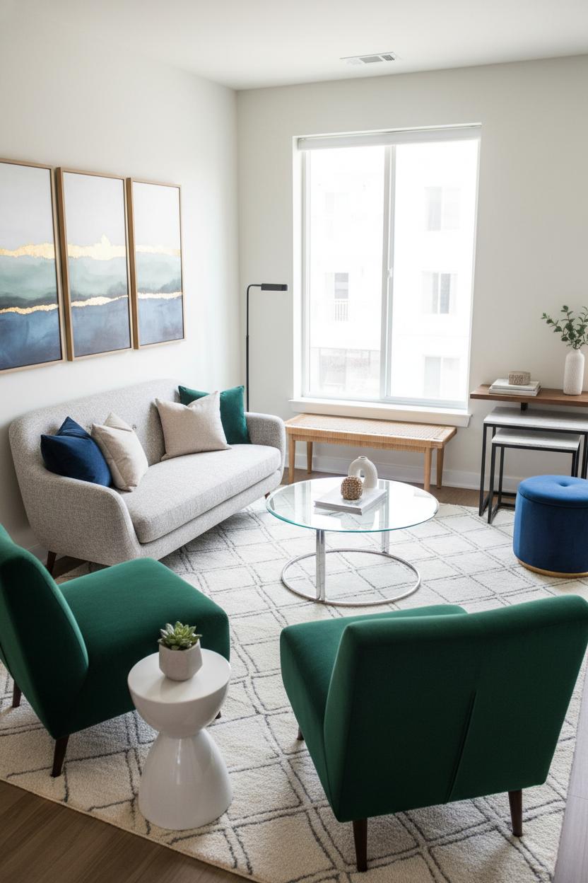 When square footage is scarce, seating that works smarter is the ultimate glow-up. Start by floating your pieces a few inches off the walls to open up sightlines—yes, even in a small living room. A slim loveseat or a low-profile, modular sectional sets the scene without overpowering the space, while a pair of swivel or slipper chairs keeps the conversation flowing and traffic clear. Think leggy silhouettes that feel light to the eye, and arrange them so fronts rest on an area rug to visually stitch the zone together. For a modern living room, swap bulky end tables for a sculptural pedestal or stackable stools that moonlight as extra perches. A glass or rounded coffee table cuts visual clutter and helps circulation. Keep a storage ottoman on deck for feet-up lounging and last-minute seating. And don’t forget the vertical plane: hang wall art a touch higher to draw the eye up, and tuck a slim floor lamp behind a chair to free precious tabletops.