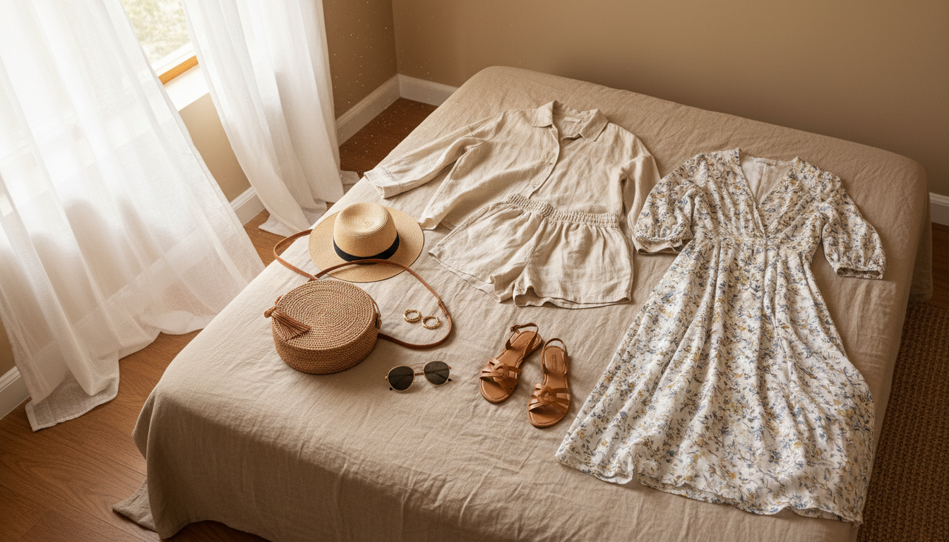 When you’re chasing sunshine, nothing beats a flowy midi dress that catches the breeze with every step and makes you look instantly pulled together. Think lightweight fabrics that skim rather than cling, a swishy hem that shows off a tan, and adjustable straps you can tweak for comfort after a long flight. Pair it with strappy sandals women love—the kind with cushy soles and delicate ankle ties—and you’ve got one of those foolproof travel outfits that moves from poolside to piazza without a wardrobe change. Add a wide-brim straw hat for shade and that effortless vacation glow, then slip on a raffia crossbody bag to hold room keys, sunscreen, and a paperback. It’s the sweet spot between beach vacation clothes and chic resort wear: easy to throw on over a swimsuit at noon, polished enough for an alfresco dinner by dusk.