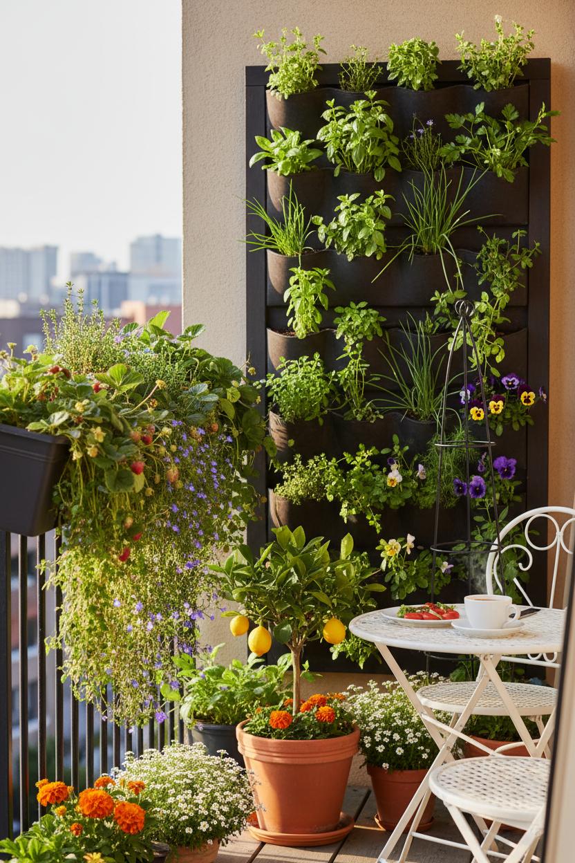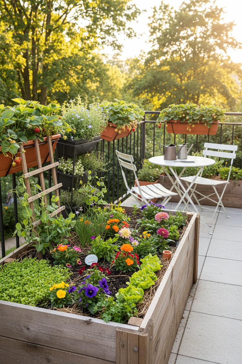 If you’re styling a balcony garden, railing planters make instant color bars—thread them with strawberries, thyme, and trailing lobelia for a soft waterfall effect. Stack herbs and salad greens in a vertical garden planter to lean into vertical gardening without losing floor space; an herb garden kit is an easy way to fill those pockets with basil, parsley, chives, and mint varieties you’ll actually use. In a tiny backyard, a small raised bed flanked by a couple of exuberant containers feels lush and intentional, and looks extra charming pulled up beside a compact bistro set for morning coffee among the blooms. These small garden ideas work because every pot multitasks: beauty, fragrance, and a bite to eat.