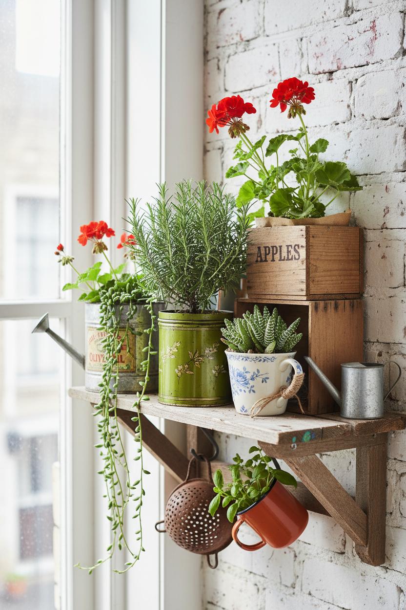 Turn what you already have into gorgeous homes for your plants and you’ll instantly make your space feel curated and creative. Think tea tins, olive oil cans, chipped mugs, woven baskets, wooden crates, even an old colander—their shapes and textures add charm while keeping costs low when you garden on a budget. A quick wash, a coat of leftover paint, and some twine or labels can transform a “toss pile” find into something boutique-worthy. I love mixing glossy metal with rustic wood for that high-low look, and it’s extra satisfying knowing your DIY planters kept something out of the landfill while giving new life to your greenery.