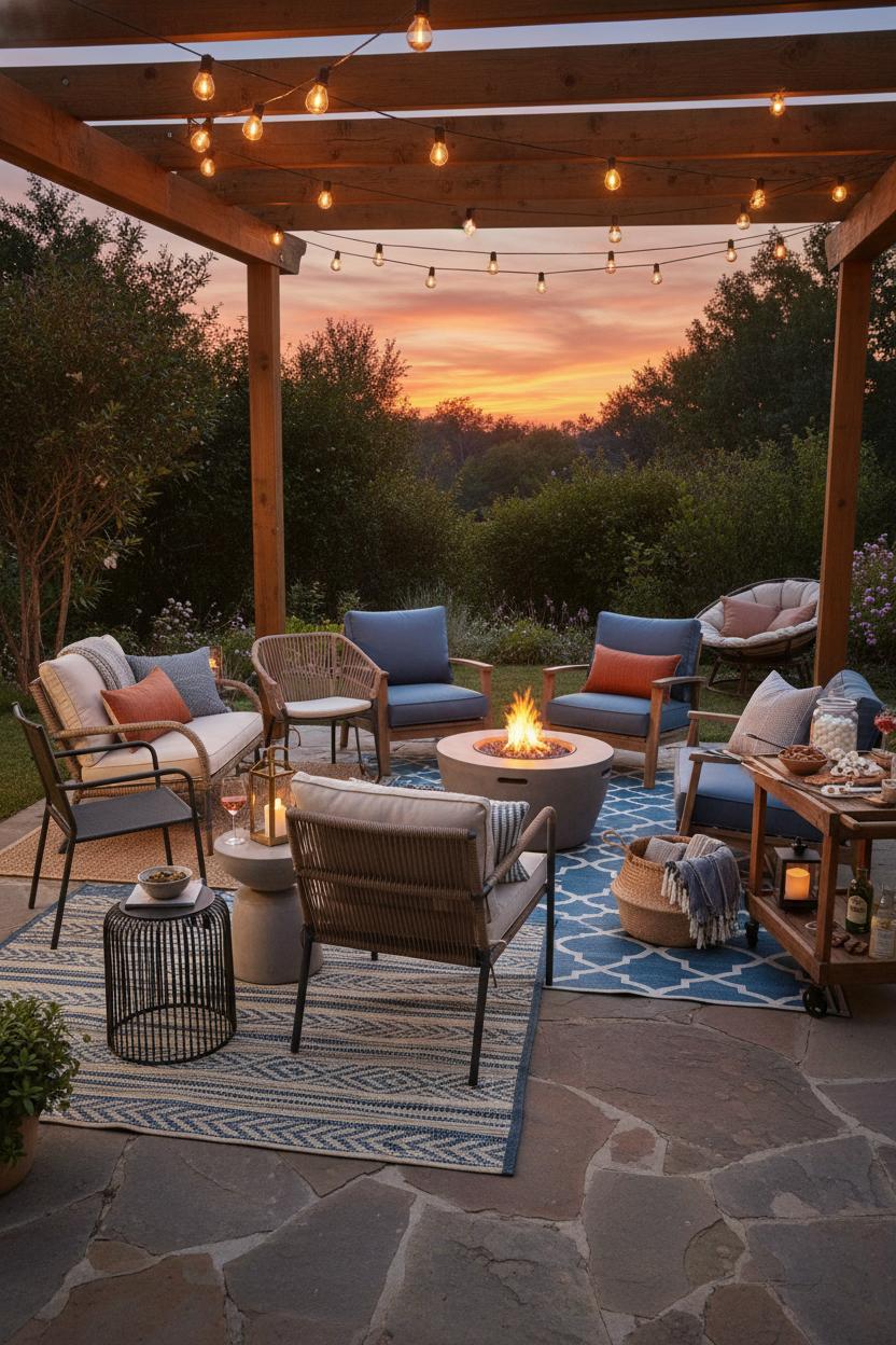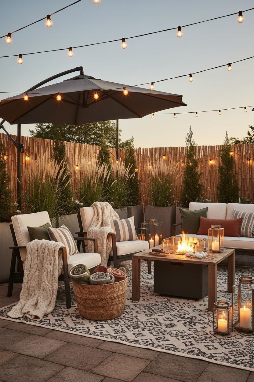 Craving warm, inviting evenings right at home? These cozy backyard ideas turn even a small patio design into a swoon-worthy retreat with layered outdoor lighting, dreamy fire pit seating, and renter friendly decor you can pack up later. Think twinkling string lights, a compact tabletop fire pit, a soft outdoor rug underfoot, and weatherproof throw pillows piled onto comfy patio chairs. Whether you’re hosting friends or savoring solo sunsets, these simple upgrades add instant glow, texture, and comfort—no major renovation required. Get ready to style, sip, and stay out just a little longer.