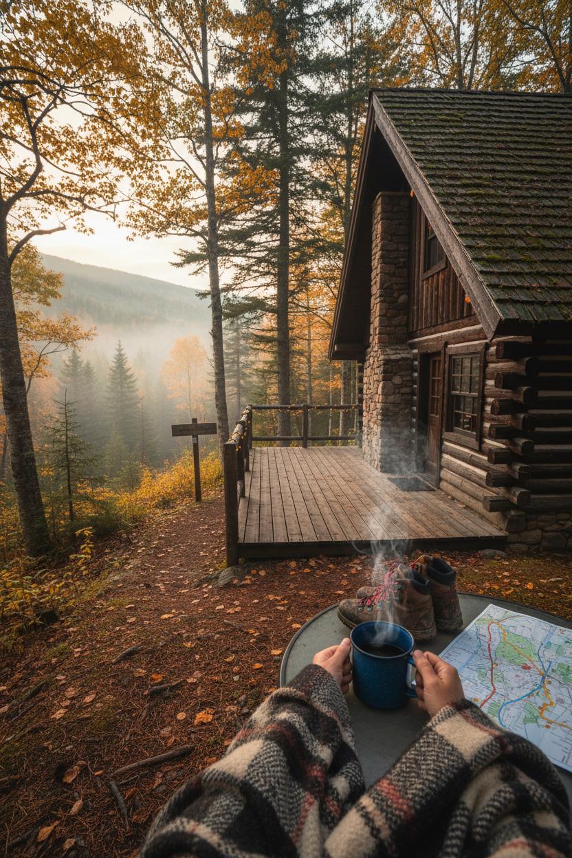 If your heart skips a beat at the sound of rushing water and the crunch of pine needles underfoot, this is your sign to plan a mountain-trails escape that’s equal parts fresh air and cozy comforts. Picture a snug, woodsy, cozy cabin tucked just off a trailhead, where mornings start with coffee steaming in enamel camp mugs and a cool mist lifting off the trees. Wrap up in a plaid blanket on the deck while you study the trail map, then lace up your trusty hiking boots and follow the path to a hidden waterfall—spray on your cheeks, mossy rocks, and maybe the flash of a curious mule deer in the brush. This is one of those cabin trip ideas that turns a simple weekend trip into an unplugged reset: pack a day bag with snacks, a camera, and binoculars for birdsong moments, then wander back in time for a nap by the fire and a sunset stroll when the mountains turn pastel.