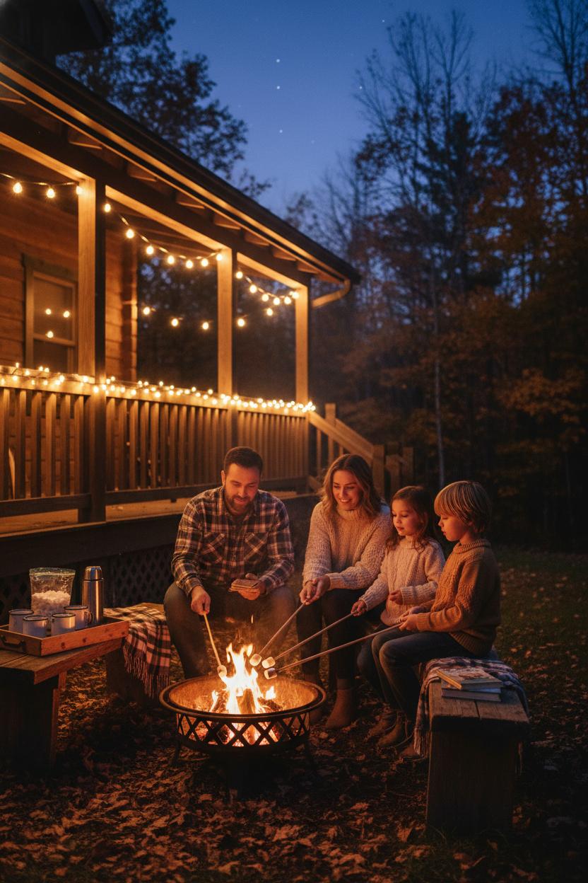 Back at your cozy cabin, layer the ambience to keep the magic going long after the hike. Drape LED string lights around the porch railing so dusk feels like a soft glow rather than an abrupt ending, and spark up a portable fire pit for s’mores and stargazing when the chill rolls in. If you’re gathering cabin trip ideas for a quick weekend trip, this one checks every box: low-pressure planning, jaw-dropping views, and plenty of slow, soul-warming moments. Toss a flannel and a beanie by the door for impromptu sunset walks, keep a basket by the entry for trail maps and extra socks, and leave your phone on airplane mode to really sink into the hush that only a forest can offer. Between scenic hikes, a plaid blanket picnic, and the crackle of fire under a sky full of stars, you’ll remember why fall travel is the season’s greatest gift—an invitation to pause, savor, and settle into the kind of simple luxuries that make a cozy cabin feel like home.