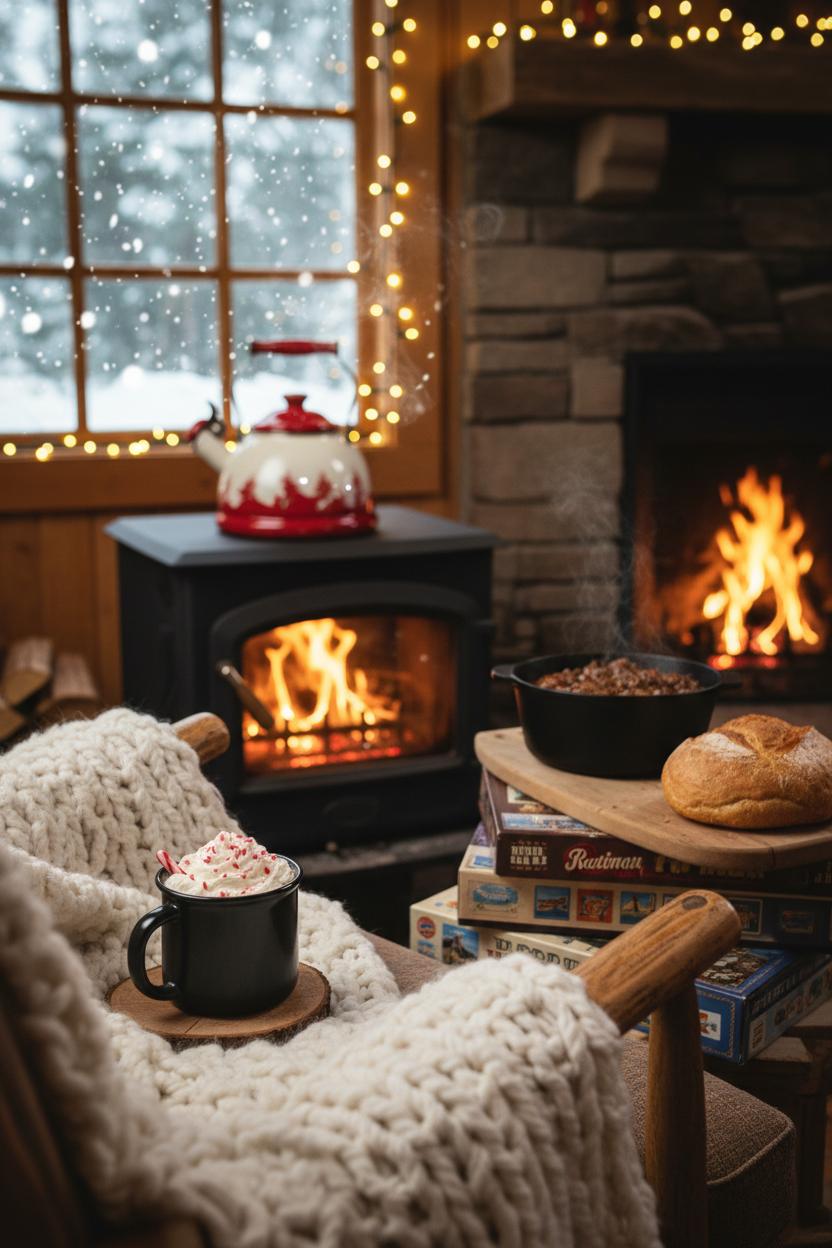 Snow swirling outside and a kettle singing on the stove is the perfect excuse to lean into winter and make your weekend cabin retreat feel like a snow-globe come to life. Pack layers you can peel on and off, wool socks, and a thermos for cocoa, then plan simple meals you can simmer low and slow while you play—think chili or stew bubbling away in campfire cookware, crusty bread warming beside it, and a tray of cinnamon rolls ready for lazy mornings. If your cabin has a safe outdoor space, a portable fire pit turns a blanketed backyard into a gathering spot for s’mores and star-spotting; indoors, drape LED string lights around windows for that soft, golden glow that instantly transforms a space into a cozy cabin getaway. Don’t forget practicals: a small shovel for clearing steps, traction cleats or sturdy boots, and a charged battery pack in case the weather decides to be dramatic.