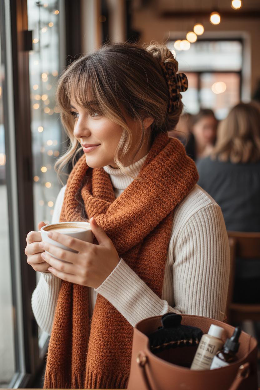 When your mornings feel crisp and your schedule feels packed, a cozy claw clip updo is the kind of quietly chic shortcut that makes you look pulled together in seconds. It’s one of those fall hairstyles that plays well with scarves, turtlenecks, and coffee runs—effortless but a little romantic. Start with day-two hair if you can; a touch of volumizing dry shampoo adds that soft, grippy texture that keeps everything in place without looking stiff. Gather your hair at the nape, twist upward like a loose French twist, and secure with a sturdy claw clip, letting the ends peek out for a fluttery finish. If you have curtain bangs, sweep them forward to frame your face—instant cozy vibes with minimal effort.