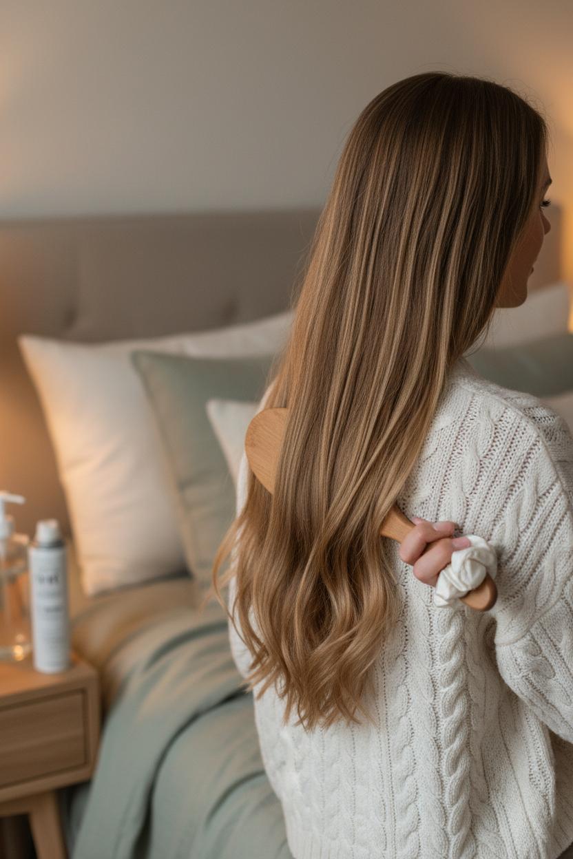 From here, lean into your favorite fall hairstyles mood. Clip the top half back with a tortoiseshell claw clip for coffee runs and leaf peeping, or twist the ends into a loose braided bun when the air turns brisk and you want that elegant, tucked-up vibe. These floaty, sleep-made bends are the ultimate autumn hair ideas foundation—romantic for pumpkin patch photos, polished enough for the office, and still soft and touchable by bonfire hour. The best part? Tomorrow’s refresh takes seconds: revive the roots with dry shampoo, smooth the halo with a whisper of serum, and you’re back to effortlessly cozy waves without ever plugging in a hot tool.