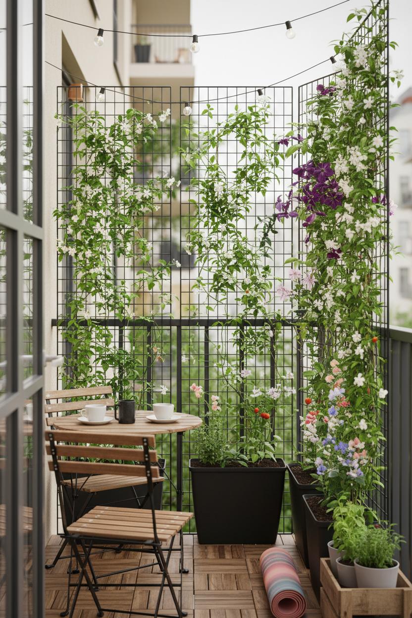 Plant them with climbers that earn their keep in small spaces: jasmine for scent, clematis for color, sweet peas or black-eyed Susan vine for whimsical blooms, even cucumbers, pole beans, or cherry tomatoes if you love an edible twist. In hot climates or for busy schedules, slip in self-watering pots so your vines stay hydrated while you live your life. On a balcony garden, pair a slim trellis planter with a petite bistro patio set and drape outdoor string lights overhead—suddenly, your evening hangout feels like a tiny bistro wrapped in flowers. If you’ve got a larger wall to dress, mix a trellis planter screen with a vertical planter to stagger heights and textures; the layered look makes the whole space feel lush without stealing floor space.