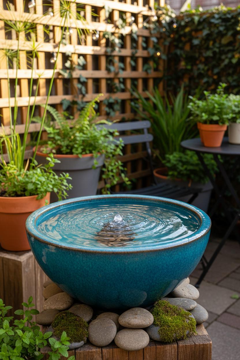 Play with height and layers to keep the footprint petite. Mount a mini fountain against a fence or privacy screen and frame it with a trellis planter—let vines climb and soften the edges for subtle vertical gardening that doubles as a backdrop. Flank the base with self-watering pots so your mint, ferns, or dwarf papyrus stay lush with minimal effort. A vertical planter on either side creates symmetry and draws the eye upward, and the whole setup pairs beautifully with a compact bistro patio set for morning coffee by the trickle. If you’re doing a weekend backyard makeover, tuck a bubbling urn beside a pathway or nestle a tabletop fountain into a corner herb station; both look high-end but take minutes to install.