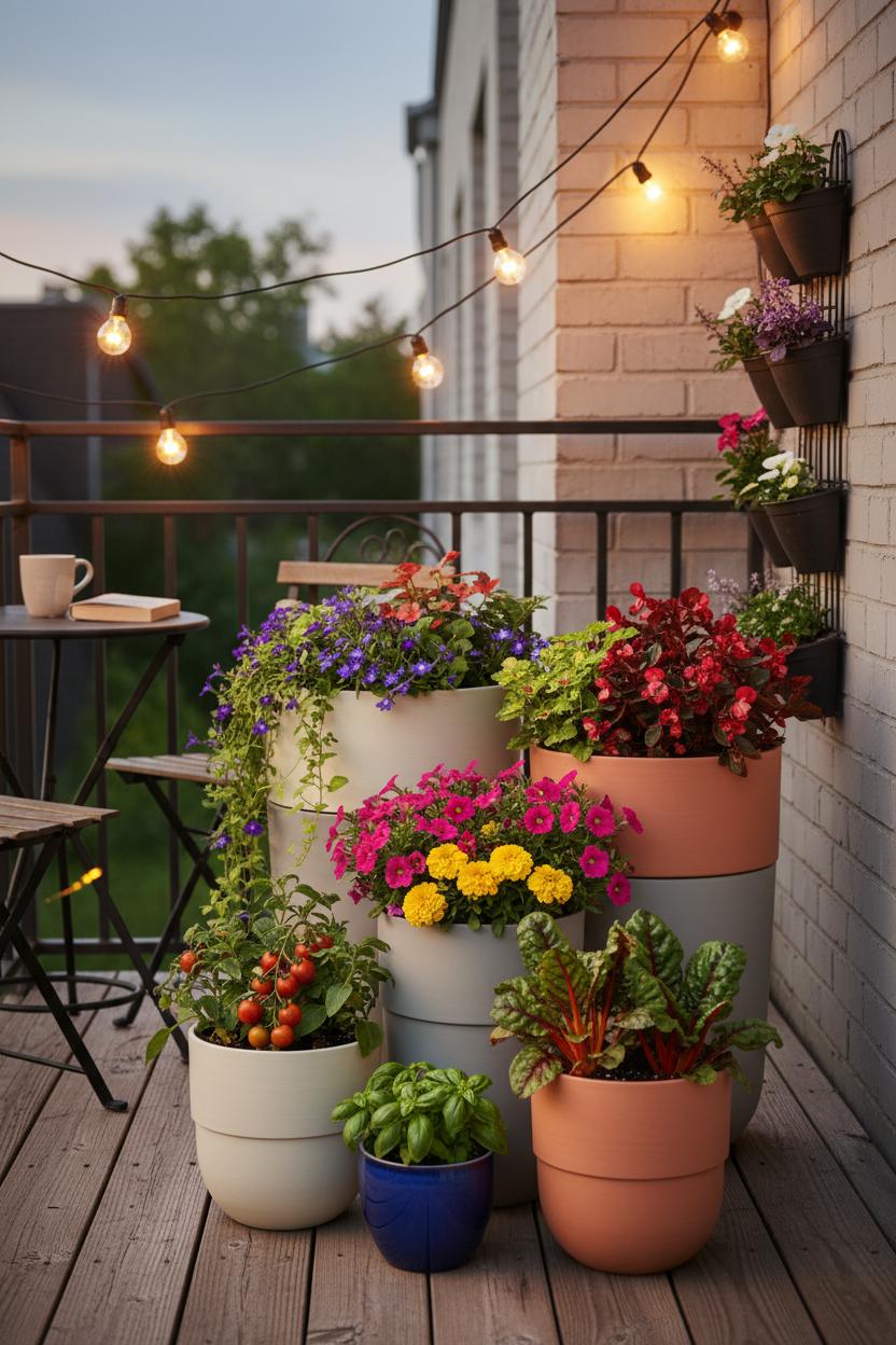Finish the look with warm outdoor string lights above your cluster and you’ve got a cozy, twilight-ready nook that feels curated but totally effortless. The best part is how forgiving this setup is: a missed watering or a weekend away won’t derail your display, and the plants reward you with fuller growth and longer-lasting flowers. Among all the small garden ideas out there, this is the one that adds the most joy for the least effort—set your colors, fill the reservoirs, and let the pots do the work while you sit back and enjoy the glow.