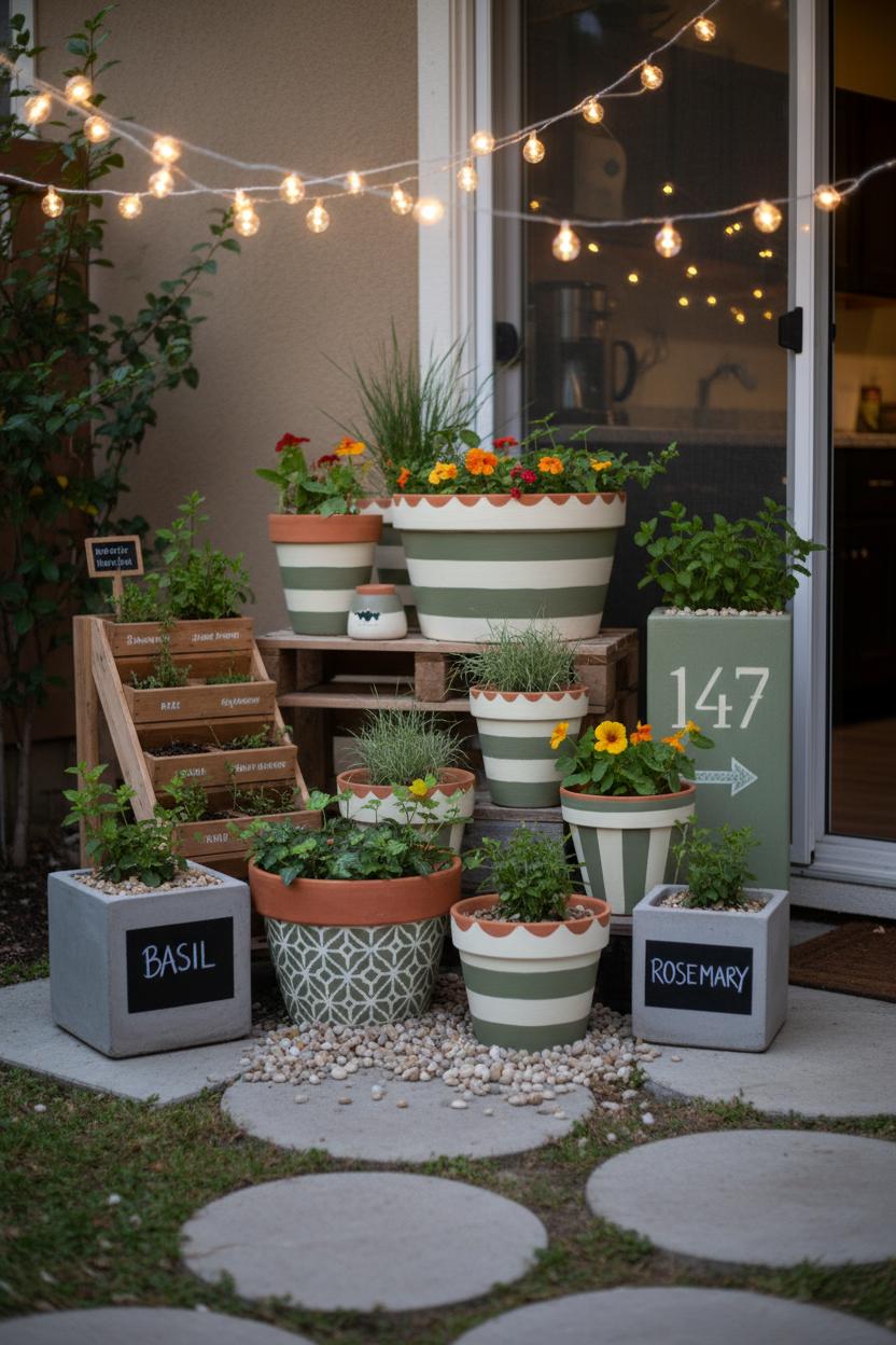 Personalize them for function, too. Paint a small rectangle of chalkboard paint to label rosemary, mint, and basil for your herb garden, or add house numbers and arrows to guide guests to the fire pit. Group pots by height to create a mini focal point, or set them on a simple DIY shelf next to a pallet planter you built from reclaimed pallet wood. A tiered herb planter looks adorable near the kitchen door, and it makes snipping fresh sprigs a breeze. This is one of those backyard projects that ties together different corners of the yard without a big budget or power tools—just a few afternoon hours and some creativity.