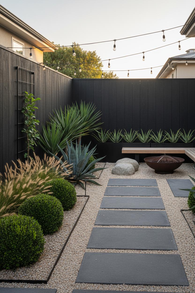 If your heart skips a beat for simplicity with a sculptural twist, this is the garden inspiration to bookmark. Think clean lines, pale gravel that crunches softly underfoot, and striking architectural plants that look good all year. Modern landscaping is all about restraint: a limited plant palette, repeated shapes, and materials that echo the geometry of your home. Picture a grid of large concrete pavers set in fine gravel, crisp steel edging, and a few bold silhouettes—agave, yucca, aloe, or clipped boxwood spheres—punctuated by feathery grasses that move in the breeze. Even a narrow side yard or tiny patio can wear this look beautifully; it’s one of those small garden ideas that delivers instant calm. Use a slim vertical trellis against a fence to train a single vine, line up matte planter pots for cohesion, or add a low-profile raised garden bed in corten or black to extend those horizontal lines without visual clutter.