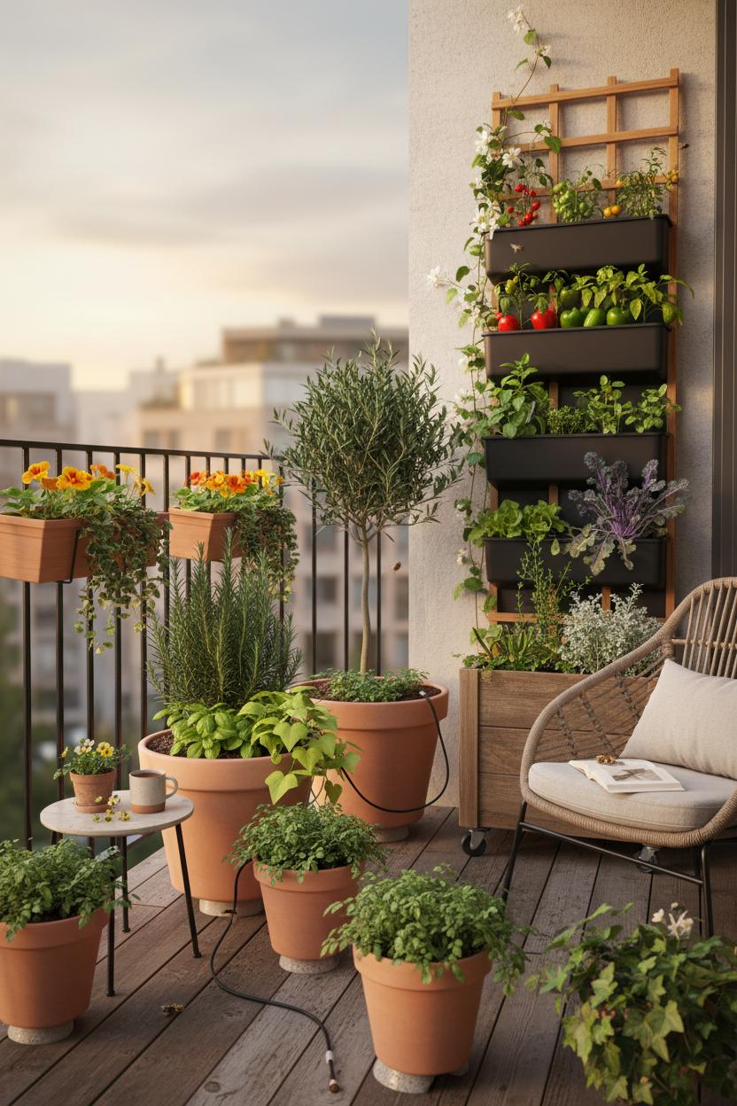 When porch railings and balcony corners are all you’ve got, container gardening turns small squares of concrete into a layered little sanctuary. Think of it as small garden design in miniature: choose a tight color palette for pots, repeat a few favorite textures, and let one standout plant lead the show. A “thriller, filler, spiller” combo works wonders—upright rosemary or a dwarf olive for height, mounded basil or coleus to fill, and sweet potato vine or trailing strawberries to spill. Use a lightweight, high-quality potting mix and elevate pots on feet so water drains cleanly; if you travel or forget to water, a discreet drip irrigation kit or self-watering containers keep roots happy without the guesswork.