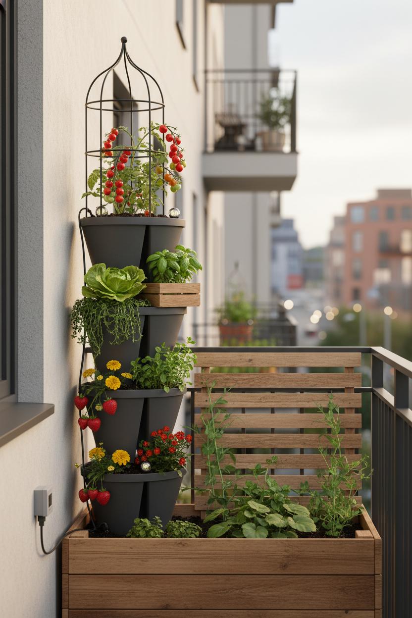 As evening falls, dot the setup with solar garden lights so your pocket farm glows like a tiny bistro garden, extending its presence into the night and adding a soft design moment to your backyard landscaping. Rotate crops seasonally—cool-weather greens up top in spring, heat-loving herbs and peppers in summer—and refresh tired soil as you go. With a few thoughtful pieces and an eye for vertical lines, these stackable, trellised mini plots prove that fresh food and beautiful form can coexist anywhere, transforming small spaces into delicious, living art.