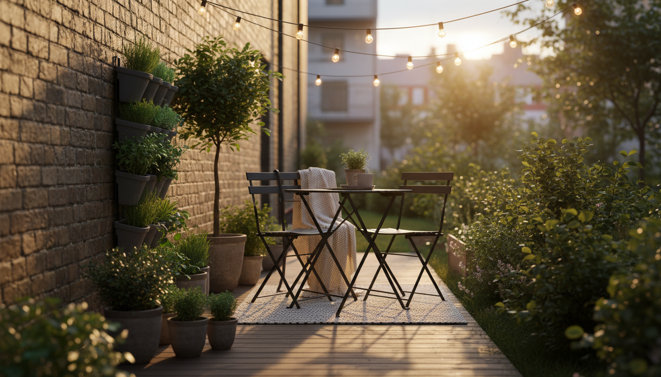 To build intimacy and privacy, go vertical. A slim vertical planter (or a DIY trellis) behind your bistro chairs becomes a living wall, doubling as a vertical garden where herbs tumble and jasmine climbs. It’s functional, fragrant, and a beautiful backdrop for meals. Drape outdoor string lights overhead—one swoop is all you need—to cast a warm glow at dusk, and, if space allows, park a compact fire pit a safe distance away for cozy shoulder-season dinners. Layer in details that are easy to store: a foldable table lantern, stackable plates, and a small basket for napkins and utensils. These little moments do more than look pretty; they make dining outside actually effortless in a tight footprint.