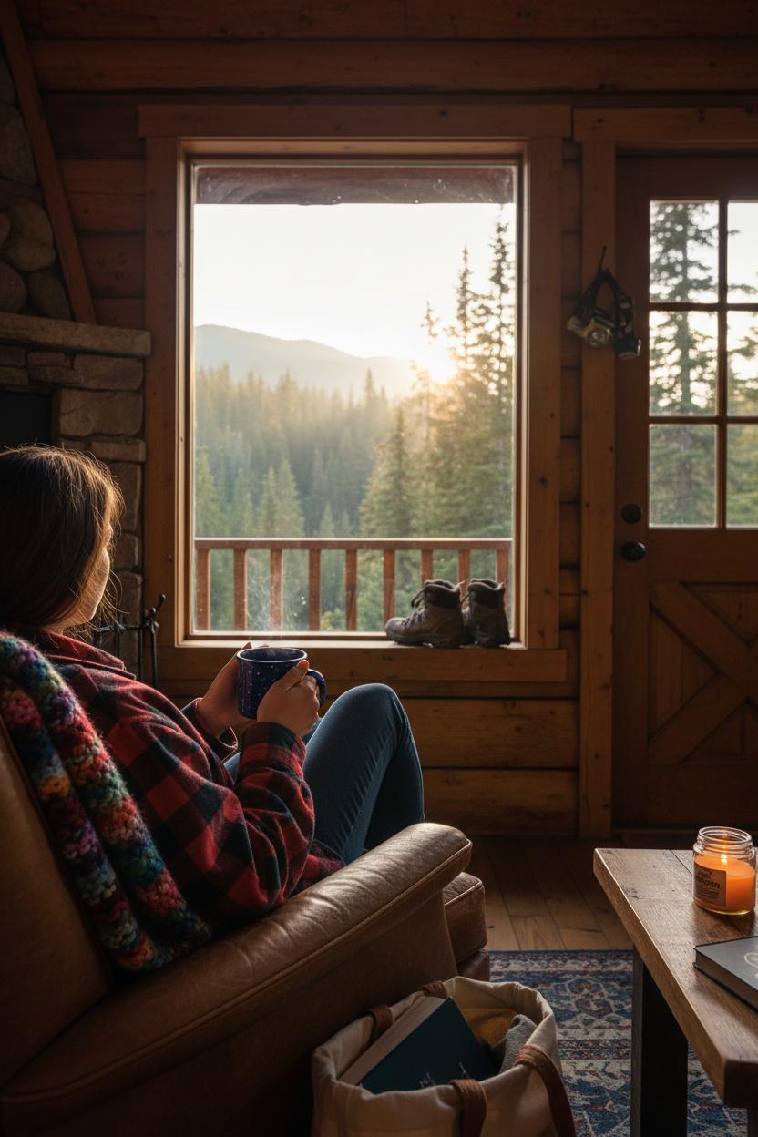 After the lakeside bliss, mosey back to your cabin and ease into the coziest part of the day. Open windows for a few minutes to invite in that crisp forest scent, then light a candle, start a fire, and make a tea-and-throw-blanket station by the hearth. For effortless settling, here are my favorite cozy cabin tips woven into the afternoon: designate a drop zone by the door with a boot tray so tomorrow’s hiking boots dry properly, stow a headlamp and gloves there too, and pre-pack a small day-hike pouch with water, snacks, and a map so your forest retreat schedule stays delightfully simple in the morning. Create a tiny coffee corner—mugs at the ready, kettle full, and beans ground—so sunrise is just a button away. Tuck board games and a deck of cards on the table, queue a mellow playlist, and slide a cookie sheet into the oven for that bakehouse aroma while you unpack. If the kitchen is rustic, keep that portable camp stove handy on the porch for quick cocoa refills under the stars. Lay out tomorrow’s layers now—flannel shirt, wool socks, and a cozy beanie—then sink into a hot shower and an early dinner. As twilight drifts in, sketch your loose mountain vacation plan for Day 2 and remember: the best forest retreat schedule leaves room for wonder.