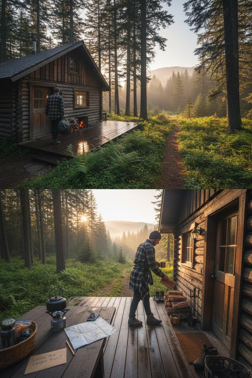 Roll up just after sunrise, when the pines are still holding their breath and the deck is silvered with dew. Unlock the door, crack a few windows to let the mountain air swirl in, and set your bags down without rushing—this is the gentle start of your cabin trip itinerary. Before anything else, check the woodpile and bring in an armful to warm the space. A few cozy cabin tips for morning arrival: keep a bundle of kindling near the hearth, stash matches in an enamel camping mug by the mantle, and light a small, steady fire instead of a blaze so the cabin heats evenly. While the stove takes, fire up a portable camp stove on the porch for quick coffee or cocoa, and sip from your enamel camping mug with your flannel shirt tossed over your shoulders. As far as a mountain vacation plan goes, slow is the move—take five minutes to glance at a trail map, drop a location pin for safety, and tuck a headlamp in the entry basket so you know right where it is later. Consider this the first block of your forest retreat schedule: arrive, settle, breathe.