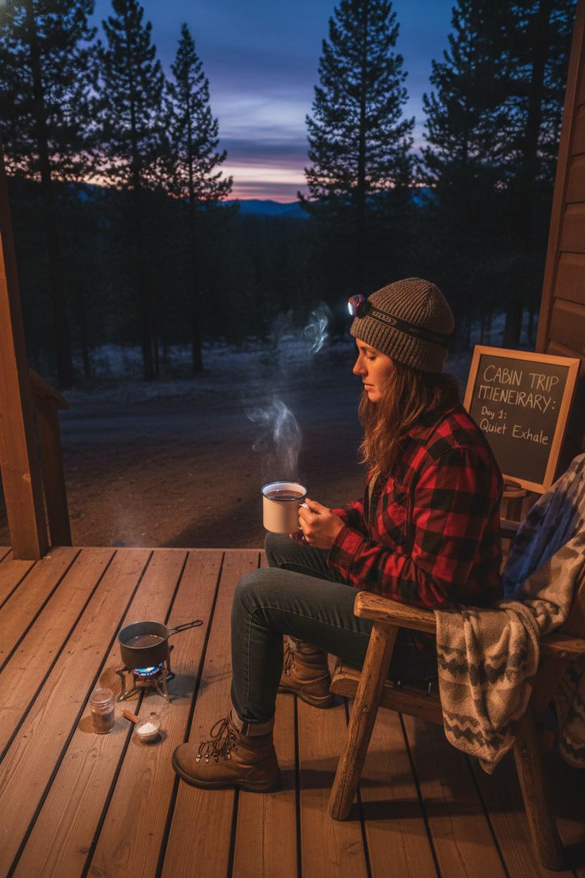 Here’s how to use it: each day follows three simple arcs—slow sunrise rituals, midday wandering, and cozy twilight wind-downs. Skim the day, pick the vibe (adventurous or laid-back), and swap activities based on weather or mood. If you’re short on time, anchor your day with one outside moment, one delicious meal, and one cozy ritual. Look for sprinkled-in cozy cabin tips to elevate the little things: warming hands around an enamel camping mug, layering a soft flannel shirt, or slipping on trusty hiking boots for quicker trail confidence. Pack a headlamp for sunset strolls and late-night wood runs, and a portable camp stove if your cabin’s porch begs for alfresco pancakes or a steaming pot of cocoa. Before you go, download offline maps, check trail and road conditions, and note sunrise/sunset times so you can time golden-hour photos and lazy brunches. If you’re arriving late, prep a no-cook spread (think charcuterie, fruit, and a kettle) and save the ambitious cooking for the next day.