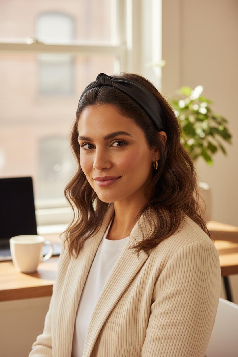 If you’re in the “coffee’s brewing, Zoom starts in 10” chapter of life, a satin hair scarf is your secret-polish weapon. Think of it as the gentlest way to frame your face and elevate a basic tee or blazer in minutes. For a soft headband look, start with a square scarf or slim satin hair scarf and fold it into a long ribbon. Set it at the nape of your neck, bring the ends up over your crown, and knot once for a tiny top-knot moment, twice for hold, then tuck the tails under for a seamless finish. A quick spritz of dry shampoo and a light tease at the crown keeps the scarf from slipping and gives that effortless lift. If you prefer a sleeker, bow-free vibe, thread the ends through a simple scarf ring and slide it off-center—tiny detail, big payoff. Consider this your mini silk scarf tutorial for days when you need fresh hair energy without the full wash-and-style commitment.