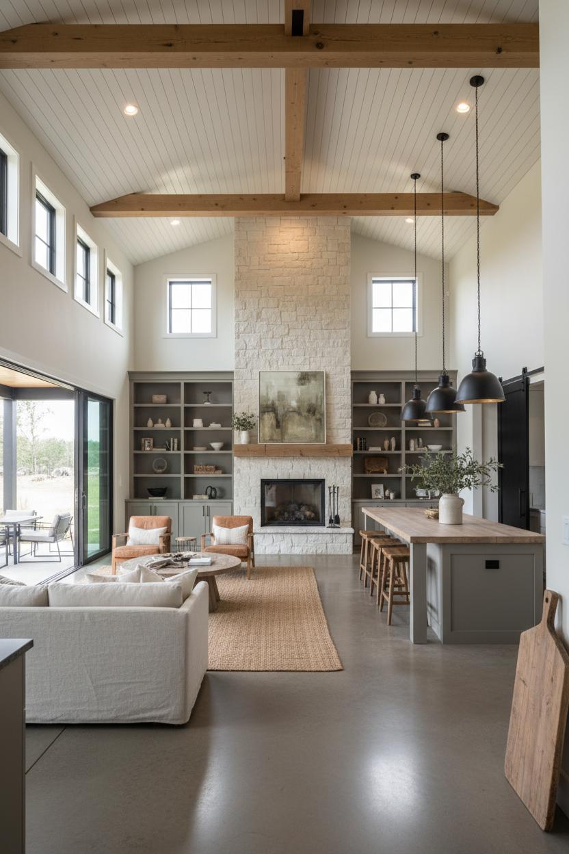 Before you call it done, run through this cozy-but-crisp checklist to make sure your barndominium ideas truly land the modern farmhouse vibe. Start with flow: your barndo floor plans should create easy sightlines from kitchen to living to patio, with generous walkways and an obvious focal wall for the range, fireplace, or a sculptural hood. If you’re still sketching, peek at barndominium house plans that prioritize open great rooms, split bedrooms, and a hardworking mudroom-laundry combo. Layer in airy volume with vaulted or tray ceilings, then warm it up with natural wood beams, chunky mantels, and a little texture—shiplap wallpaper is the renter-friendly trick for instant charm without the sawdust.