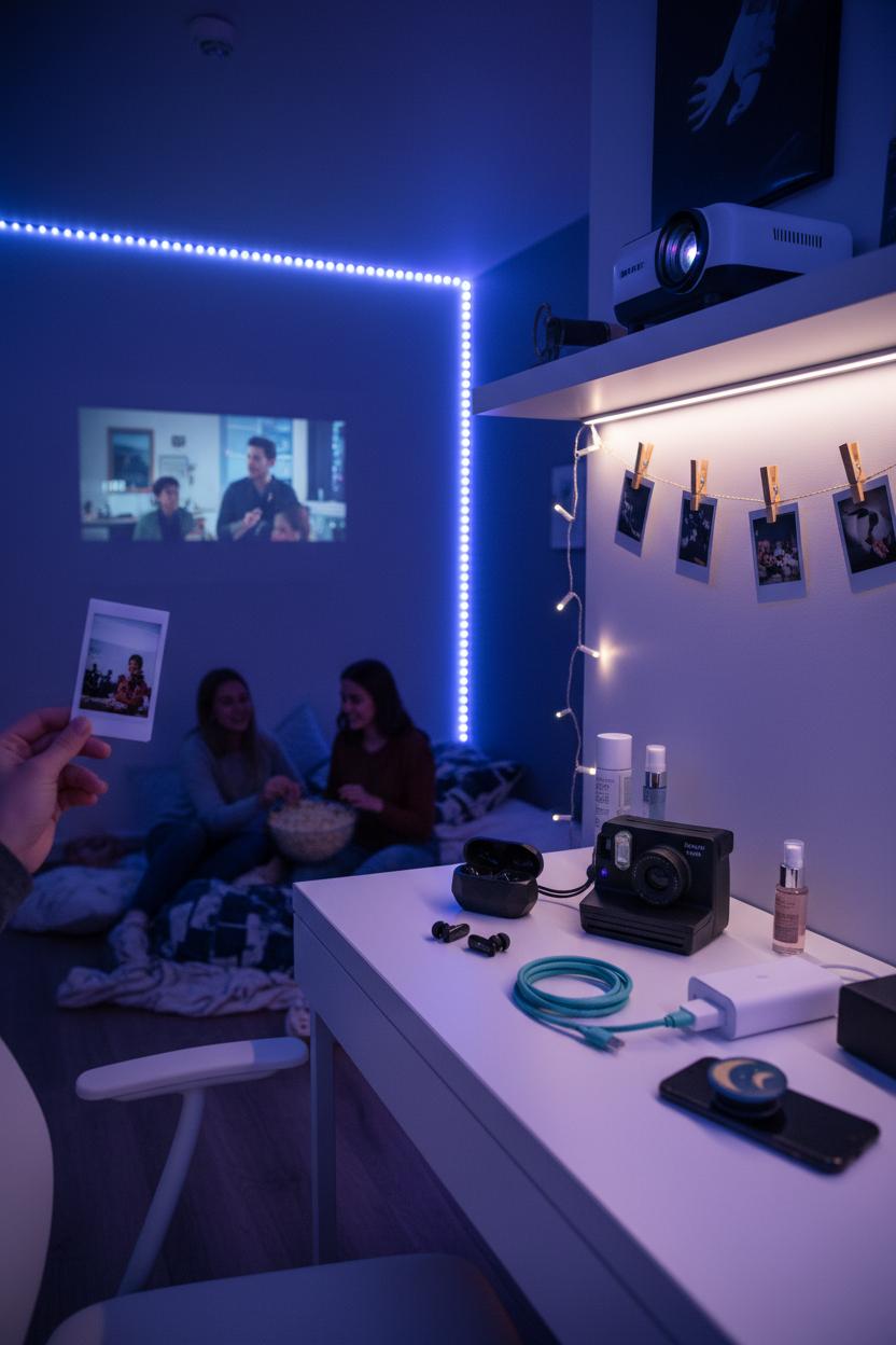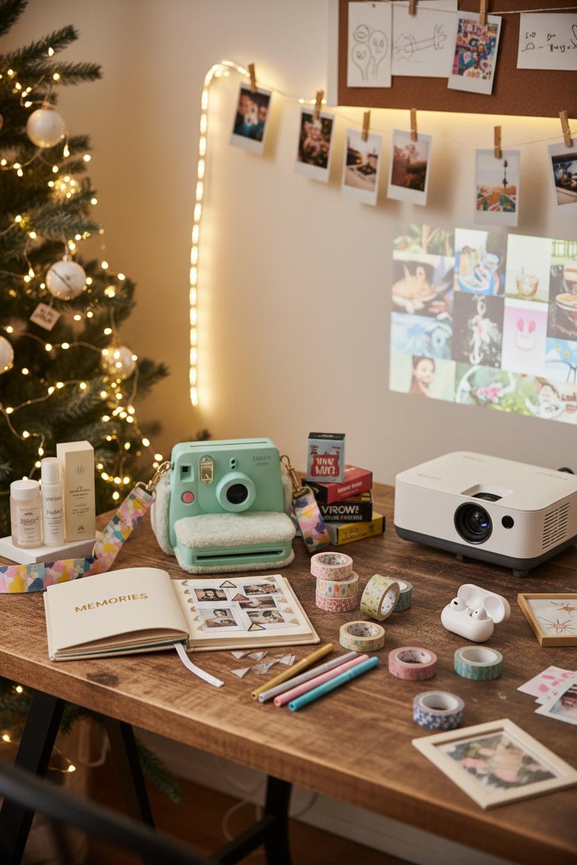 If their desk is where the magic happens, make it feel like a little sanctuary that invites focus and creativity. Think cozy lighting, cushy headphones, and tools that keep everything tidy and inspiring. LED strip lights set a soft glow that makes late-night study sessions feel calm instead of chaotic, and wireless earbuds help them zone in on playlists or lectures without disturbing roommates. A compact mini projector turns a blank wall into a study screen for presentations, YouTube tutorials, or group review nights in the dorm lounge. For a personal touch, a polaroid instant camera can capture memories from clubs and game nights—pinning those snapshots above the desk adds personality and motivation when they need a lift. These are the kind of christmas gifts for teens that feel fun now and seriously helpful once school cranks back up.