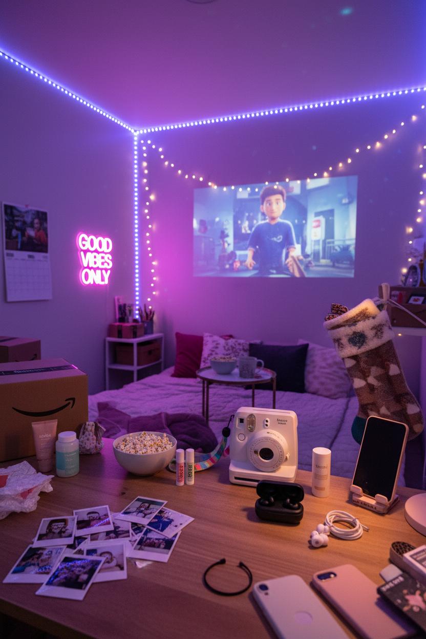The beauty of last-minute Amazon finds is how easily you can layer them. Pair wireless earbuds with a small carrying case, bundle LED strip lights with a neon sign for a statement wall, or match a polaroid instant camera with colorful film packs so they can start printing instantly. Wrap the mini projector with microwave popcorn and hot cocoa sachets and you’ve got a ready-made movie night. Whether you need one standout present or a handful of stocking stuffers, these picks arrive quickly and feel curated, cool, and totally teen-approved. Stress less, add to cart, and let fast shipping deliver the holiday magic right on time.