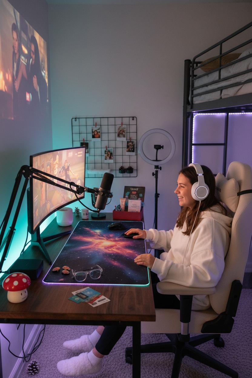 For the teen whose headset is practically part of their outfit, lean into tech gifts that make their setup feel pro and personal. Think LED strip lights tracing the edge of a desk or bed for that dreamy, color-shifting glow on camera, a comfy mic arm and mouse pad upgrade, and wireless earbuds for lag-free mobile gaming on the bus or between classes. A mini projector turns any blank wall into a massive screen for couch co-op or late-night watch parties after stream—instant main-character energy. If you’re hunting for christmas gifts for teens who love to stream, a soft ring light and tidy cable organizers help their space look polished without feeling try-hard. Don’t forget the small but mighty stocking stuffers: thumb grips, a cute desk vacuum, game store gift cards, and blue-light glasses they’ll actually wear.