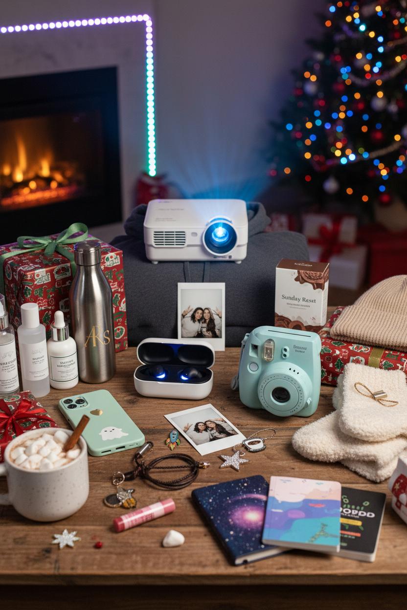 If you’re on the hunt for christmas gifts for teens, think about what fits their everyday vibe: fun, functional, and photo-worthy. The teen gift ideas that always get a second glance are the ones that make their room feel more them, their playlists sound better, and their socials pop. Tech gifts are a no-fail starting point—sleek wireless earbuds for the bus ride to school, a tiny mini projector that turns any blank wall into movie night magic, or color-shifting LED strip lights that transform their bedroom into a cozy retreat for homework, gaming, or late-night journaling. For the teen who documents everything, a polaroid instant camera is pure nostalgia with a modern twist, turning hangouts into keepsakes they can pin to cork boards or tuck into phone cases. Don’t forget personalization: a cute phone case, a monogrammed water bottle, or a journal in their favorite aesthetic makes even the simplest holiday gifts feel thoughtful and curated.