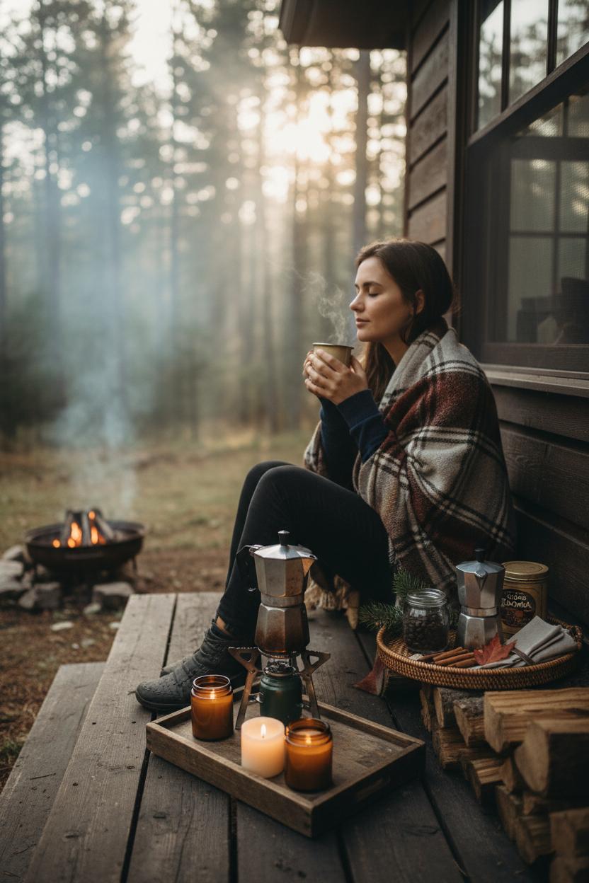 Before you hit the road, think of your bag as a mood board for the entire escape: warm textures, layered neutrals, and little luxuries that make your rustic retreat feel intentional. Start with touchable textiles—fold a plaid wool throw on top so it’s the first thing you reach for when the temperature dips, and tuck in a pair of thick socks and your softest cardigan. Add light that flickers and flatters: a couple of soy candles instantly bring that hygge style glow to rainy afternoons and starry nights. For sips by the fire, pack enamel camp mugs and your favorite loose-leaf tea or hot cocoa mix. If you’re a coffee devotee, a portable espresso maker earns its place, turning quiet mornings into café moments while the forest wakes up.