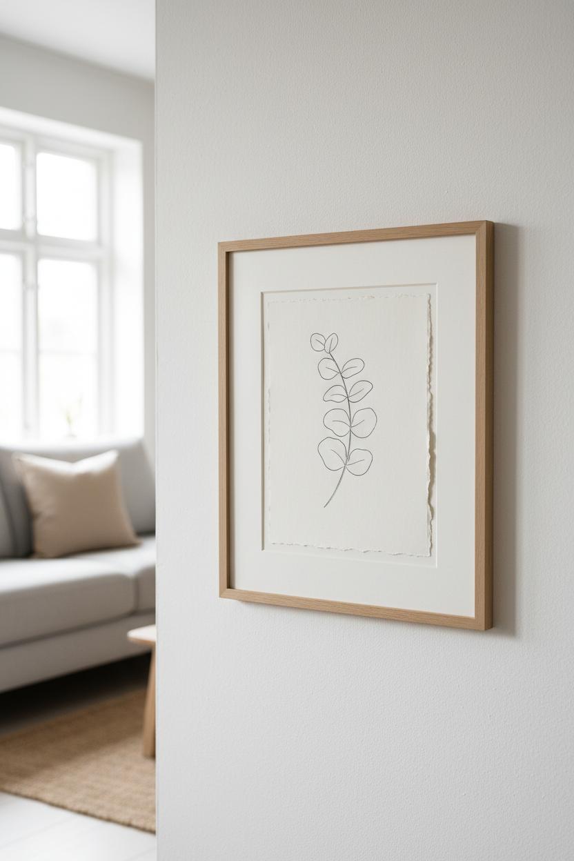 Keep the subjects soothing and elemental to lean into hygge style: misty landscapes, botanical silhouettes, abstract brushstrokes that feel like fog or tide lines. Add one tactile piece—a woven wall hanging or a small plaster relief—to bring dimension without breaking the calm. Leave generous margins in your mats so the compositions feel airy, and aim for a consistent centerline when hanging for that effortless Scandinavian order. Rotate pieces with the seasons—stormy grays in winter, sunwashed beiges in summer—so your walls evolve gently while the room’s peaceful rhythm stays the same.