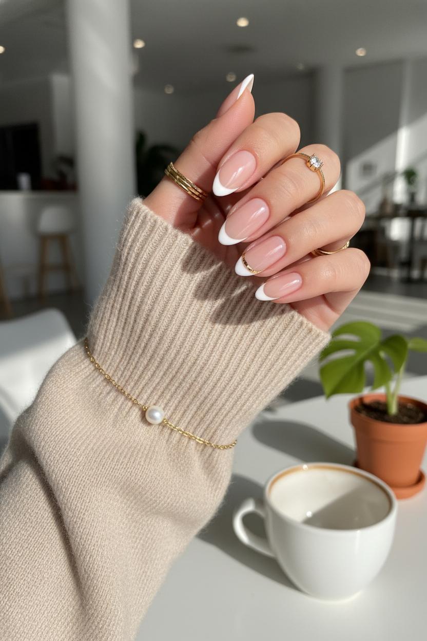 Prep and proportion tie it all together. File the sidewalls to a gentle taper, round the corners just enough to soften the silhouette, then float your top coat to keep the curve glossy and smooth. Cap the free edge for long wear and finish with cuticle oil so everything looks hydrated and couture-level neat. The result is that perfect balance: french tip nails that feel timeless yet fresh, from latte runs to aisle walks. It’s the kind of quiet luxury that makes a nude manicure look intentional, camera-ready, and confidently understated—soft glam nails that whisper rather than shout, and pair beautifully with your favorite rings and a swipe of lip gloss.