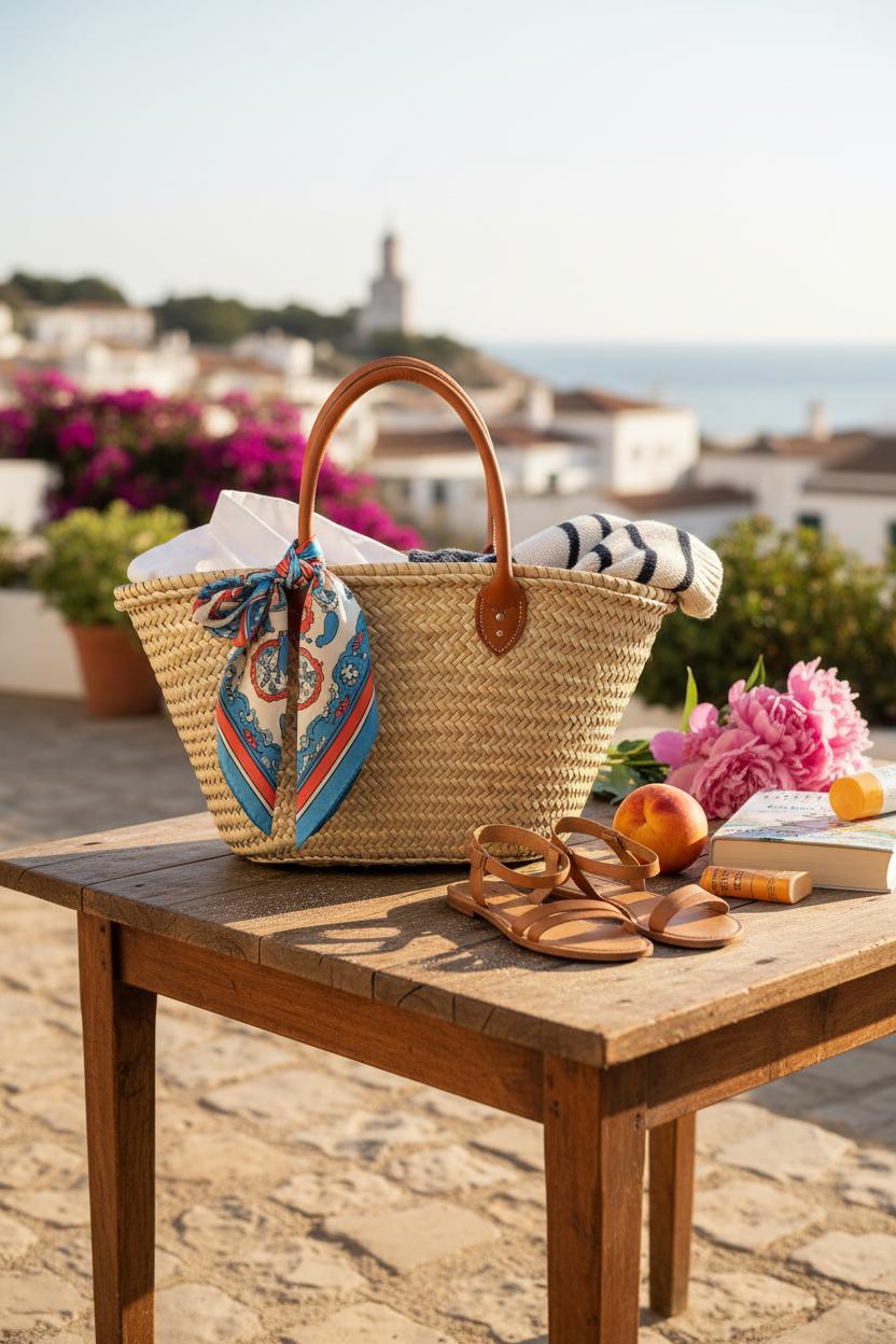 If there’s one piece that instantly transports your look to the sun-washed promenades of the Riviera, it’s the straw basket bag. It’s the heart of Mediterranean style: unfussy, artisanal, and endlessly practical. Picture it swinging from your wrist as you wander a morning market for peaches and peonies, then resting beside your lounger with a paperback and SPF. The airy weave keeps everything light, while the structured shape adds polish—exactly the coastal chic energy that defines euro summer outfits. For a travel capsule wardrobe, choose a medium size with sturdy leather handles in tan or cognac; it goes with everything and stands up to day-to-day exploring. I like to tuck my scarf or sweater inside when flying, then use the bag as my personal item—suddenly it’s both chic and functional on your summer packing list.