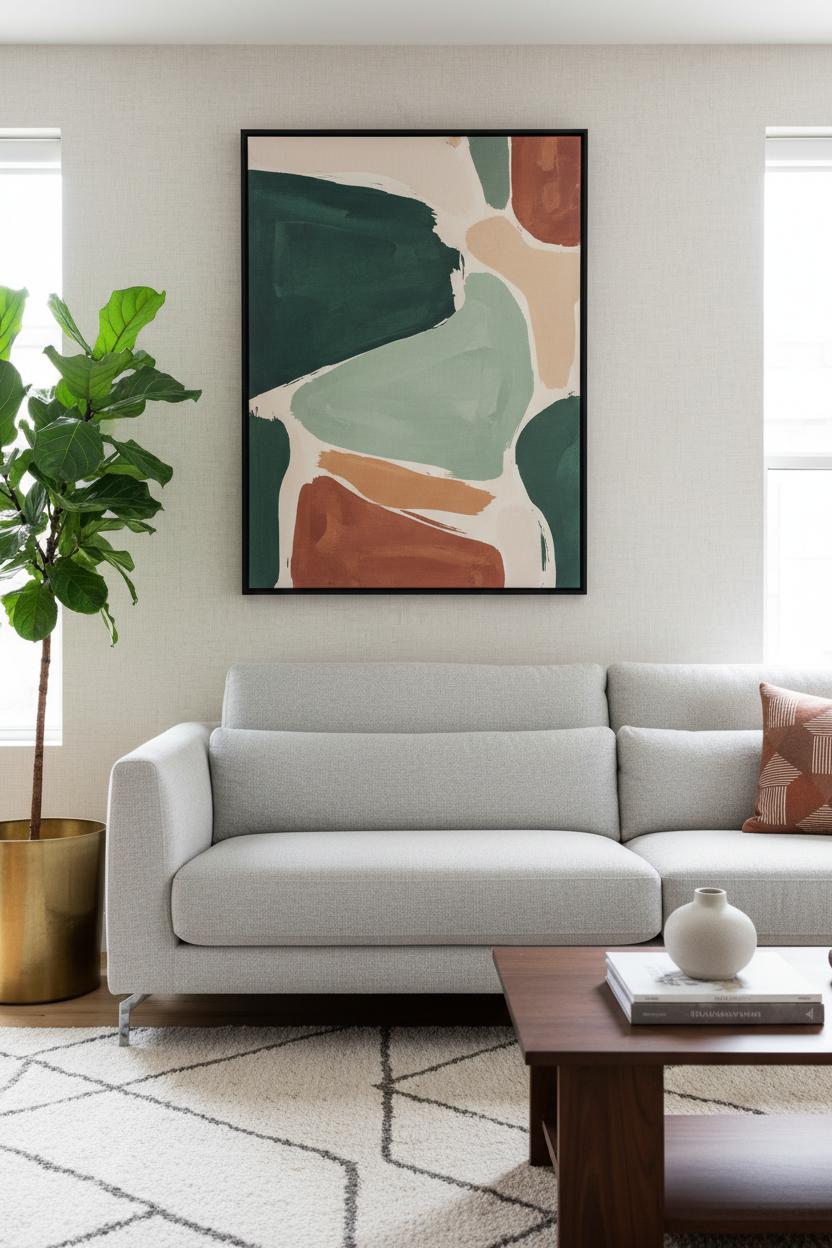 That big stretch of wall above the sofa is prime real estate for living room wall decor, and the easiest way to make it feel intentional is to go big and grounded. A single piece of large wall art instantly anchors the room—think modern wall art with soothing abstracts, organic landscapes, or bold graphic brushstrokes that echo your rug or throw pillows. Aim for a canvas or framed print that’s roughly two-thirds the width of your sofa, and hang it about 6–8 inches above the back for a tailored look. If you’re craving dimension, layer in texture: linen-wrapped canvases, matte frames, even a subtle backdrop of peel and stick wallpaper behind the sofa to add depth without a permanent commitment. For smaller spaces, one oversized photograph or diptych reads calm and curated; for bigger rooms, a triptych keeps the scale right while breaking up the visual weight. Keep your palette cohesive and let the art’s colors whisper to the rest of your textiles.