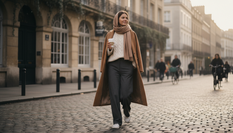 For the weekend, the switch is simple: trade heels for white sneakers women swear by, half-tuck a slouchy knit, and roll the hem a touch for an easy, undone vibe. The same trousers become a canvas for textural play—think cashmere, ribbed cotton, or a nubby knit under a longline coat or trench. Toss a scarf in a complementary neutral and you’ve got cozy, camera-ready layers that still read streamlined. For fall outfit ideas, try camel trousers with a cream turtleneck sweater, layered under a camel coat women wear year after year; when temps drop, add a tonal beanie and those trusty gold hoop earrings to keep it chic.