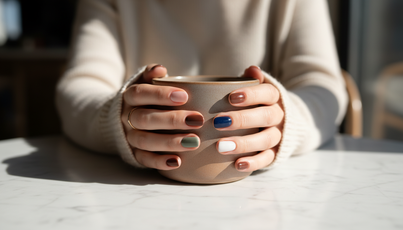 When you’re choosing nail polish for short nails, placement is everything. Think of your polish like tailoring: a slim, strategic cut makes all the difference. A whisper-thin French line that hugs the very tip elongates the nail bed, while a micro side-French—just a sliver of color along one edge—creates a chic, lifted look without overwhelming the canvas. Negative space is a minimalist nails secret; leave a clean crescent at the cuticle or a slim border around the sides to visually stretch the nail. Even a single off-center dot or a delicate vertical stripe can guide the eye and instantly refine your shape. For short nail colors that look modern, try tonal pairings—soft taupe with mocha, latte with cream, dusty rose with cocoa—applied in slim accents rather than full coverage.