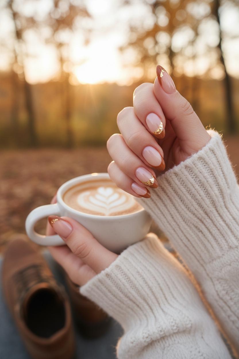 When in doubt, edit: two accent nails with foil, two with fine metallic lines, and one solid cinnamon tone is a fail-safe combo that feels thoughtfully layered. If you’re craving something softer for work, switch to sheer cappuccino bases and micro-foiled French tips—minimal but still rich with texture. These nail art ideas play beautifully with scarves, latte sleeves, and chunky knits, and they flex from pumpkin patch afternoons to date-night dinners. Consider it the easiest way to add a golden-hour filter to your hands all season long, without straying from the comfort of neutral nail colors.