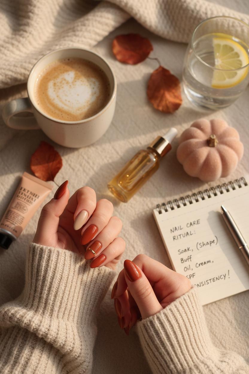 Consistency is the quiet hero. Keep a mini cuticle oil in your bag, sip plenty of water, and file in one direction to avoid splits. Midweek, refresh with a thin layer of top coat to extend shine, and touch up tips if you’re hard on your hands. Whether you’re wearing a creamy latte hue or layering cinnamon tones with a gilded accent, this simple ritual keeps every autumn manicure looking salon-new longer—and helps your nails grow stronger between styles so you’re ready for whatever nail art ideas you fall for next.