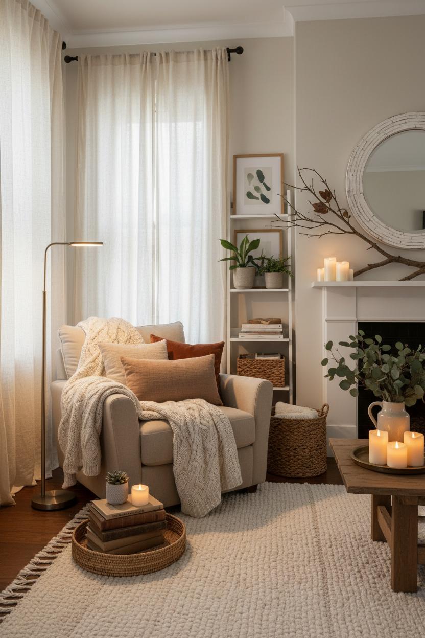 Round it out with thoughtful, budget-smart styling. Rearrange to create a snug reading perch by the window, drape your chunky knit throw over the arm of a chair, and stack a few favorite books on a tray with a candle and a tiny plant. Frame downloadable art prints in thrifted frames you’ve spray-painted to match your palette, and swap pillow covers seasonally to refresh the room without buying new inserts. Lean into hygge decor’s quiet luxuries—soft textiles, layered textures, and gentle light—and your space will feel welcoming, lived-in, and effortlessly warm, no matter the size or budget.