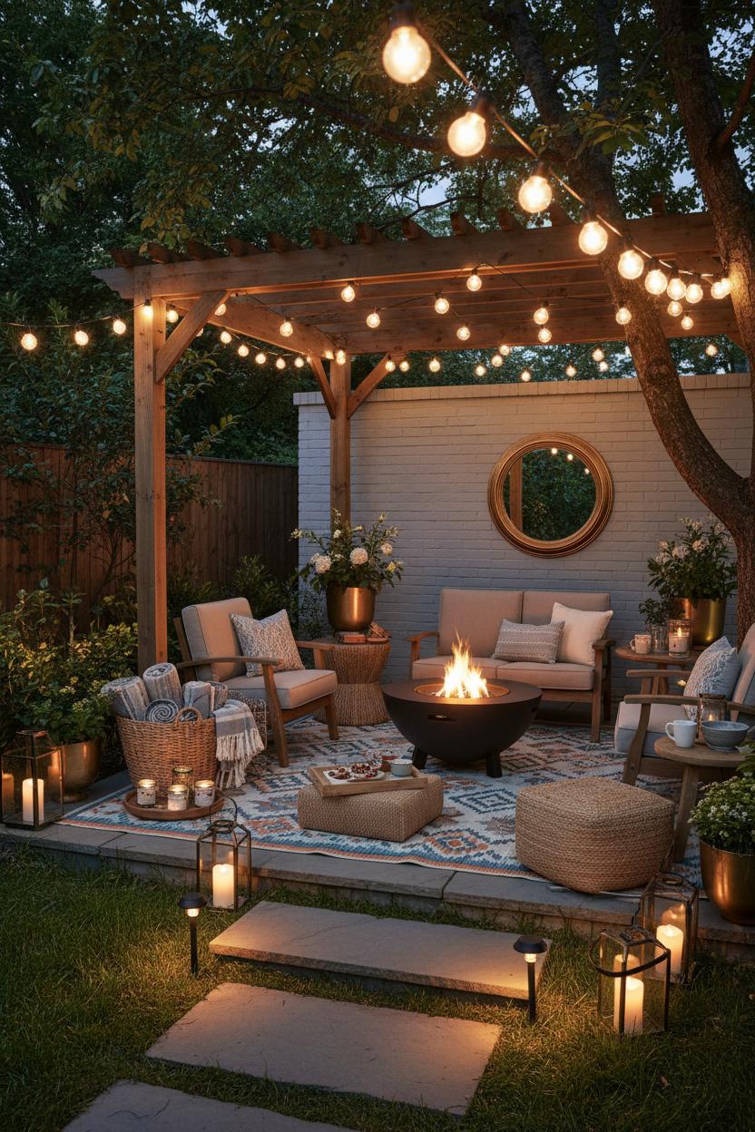 Dreaming of a snug retreat steps from your door? Explore cozy backyard ideas that turn a small backyard into a glow-up haven with patio lighting, patio lanterns, and string lights outdoor. We’ll show simple outdoor seating layouts layered with an outdoor rug and weatherproof cushions, plus the magic of a smokeless fire pit or classic fire pit for warmth without the fuss. From budget swaps to easy styling tips, this guide helps you curate ambiance, comfort, and conversation-ready corners your guests will love—no major makeover required.