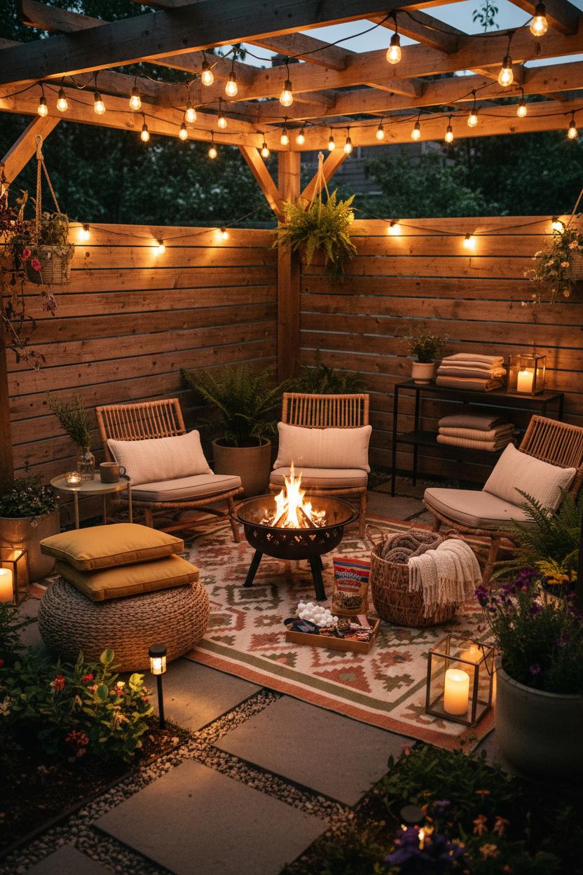 Cozy Backyard Ideas: Warm Lighting & Seating Nooks