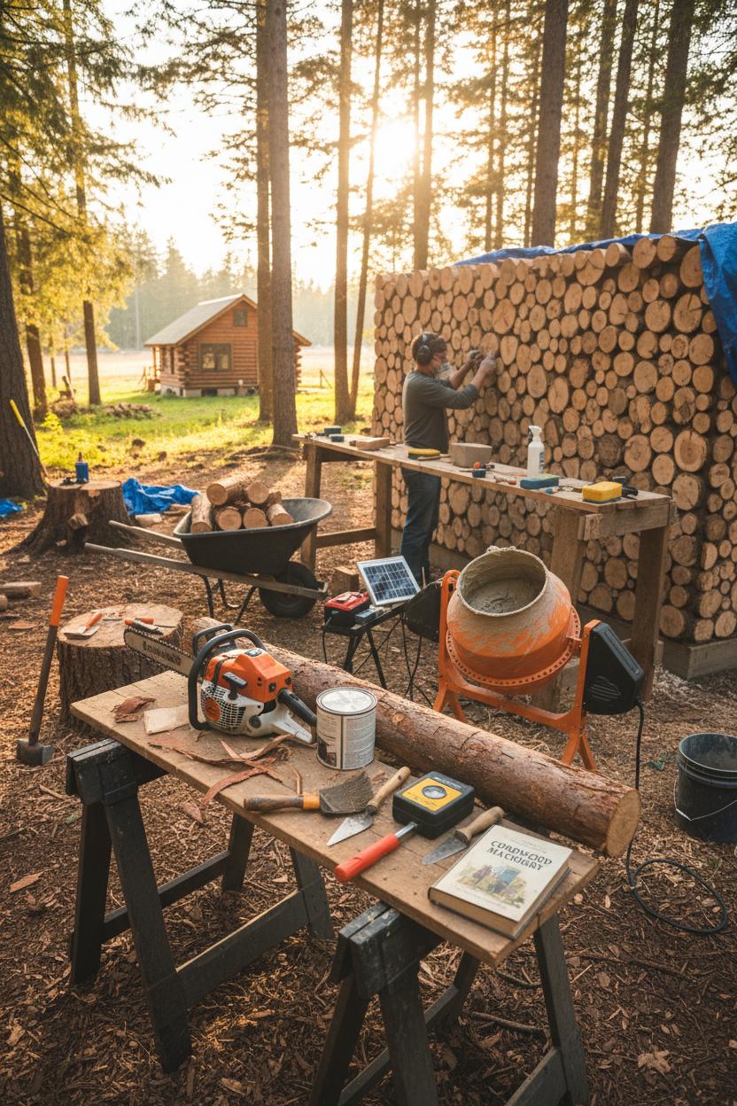 Before you lay the first log round, set up a simple, well-loved toolkit that makes cordwood building feel like a relaxed weekend craft instead of a wrestling match. A sharp chainsaw or miter saw trims log ends to even lengths, while a drawknife or debarking spud peels bark cleanly for tidy, breathable walls in your future cordwood house. Keep a moisture meter handy to make sure those pieces are dry and ready, then brush on a log end sealer so checks stay minimal and your patterns look crisp. A couple of sturdy sawhorses, a splitting maul, buckets, a wheelbarrow, and a few faithful trowels round out the basics. I like to keep a dog-eared cordwood masonry book nearby for mix ratios and pattern inspiration; it’s like a friendly mentor perched on the sawhorse, nudging you toward small, smart choices that add up to a truly cozy, natural home.