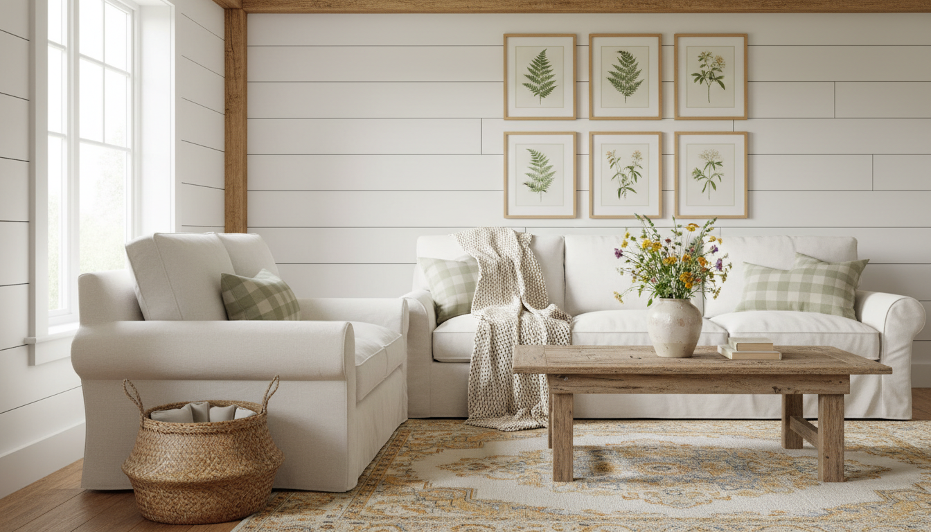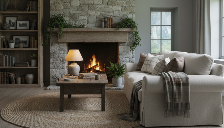 Dreaming of a country home aesthetic that wraps you in calm? These cozy interior ideas blend farmhouse decor charm with cottagecore style whimsy to create a rustic living room you’ll never want to leave. Layer a linen throw blanket over a vintage style rug, anchor the space with a reclaimed wood coffee table, and tuck stems into a stoneware vase for organic texture. Warm it all with brass wall sconces and soft neutrals, then add timeworn books and woven baskets. Simple, soulful, and effortlessly welcoming—let’s style your living room for slow mornings and golden-hour glow.