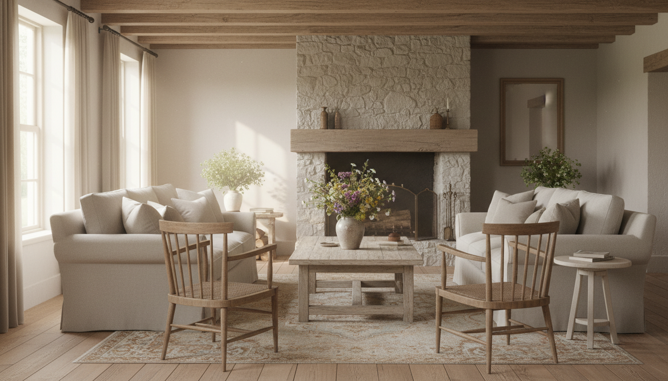 Dreaming of a cozy country house interior that balances rustic decor with refined comfort? In this guide to rustic elegance, we’ll show you how to layer farmhouse style with cottagecore home charm (think vintage wood furniture, a linen slipcover sofa, and a farmhouse coffee table styled with wildflowers). Warm up your space with a vintage rug underfoot, a wooden beam chandelier overhead, and stone fireplace decor that glows at golden hour. From patina to plush, discover simple swaps and timeless textures that make every room feel gathered, grounded, and gorgeously lived-in.
