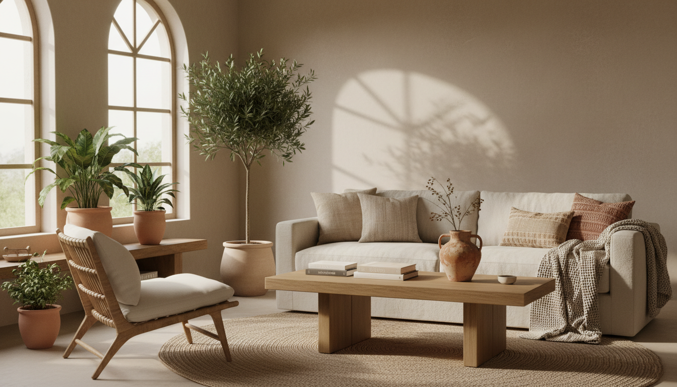 Dreaming of a cozy, earthy living room that feels calm and grounded? This organic modern guide blends neutral home decor with natural wood accents, soft textures, and sun-warmed tones. Layer a linen sofa with tactile pillows, anchor the space with a jute area rug (hello, jute rug style), and pull up a rattan accent chair beside a solid wooden coffee table. Finish with terracotta planters, woven baskets, and candlelit glow. Get ready to create a sanctuary that’s effortless, timeless, and beautifully connected to nature.