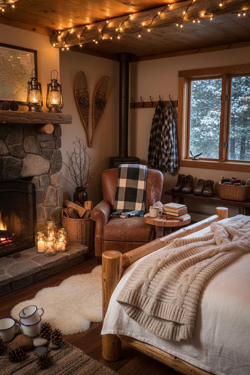 Finally, let your keepsakes do the storytelling. A woven tote for trail maps by the door, extra slippers in a basket, and a row of hooks for flannels keep things tidy but lived-in. Bring in nature with pinecones, branches, and river stones as simple accents, and keep the soundtrack soft—crackling fire, acoustic tunes, maybe a snowfall outside if you can order one up. With a few thoughtful touches and this cozy getaway inspo as your guide, your cabin will feel personal, warm, and perfectly you—no renovation required, just layers, glow, and the little rituals that turn four walls into a retreat.