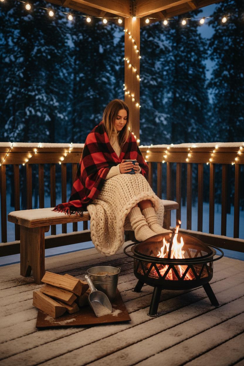 There’s something about a winter weekend trip that feels instantly magical when the first sparks catch in a portable fire pit and the night settles soft and quiet around the trees. If you’re gathering cozy getaway inspo, imagine stepping onto the cabin deck wrapped in a plaid wool blanket, tucking your toes under a chunky knit throw, and cradling hot cocoa in enamel camp mugs while the flames dance. A strand of battery string lights twinkles overhead, turning your little corner of the woods into a pocket of hygge decor—pure, glowing comfort with a dash of rustic cabin style. This is the soul of cabin retreat ideas: simple rituals, warm layers, and a safe fire to anchor the evening.