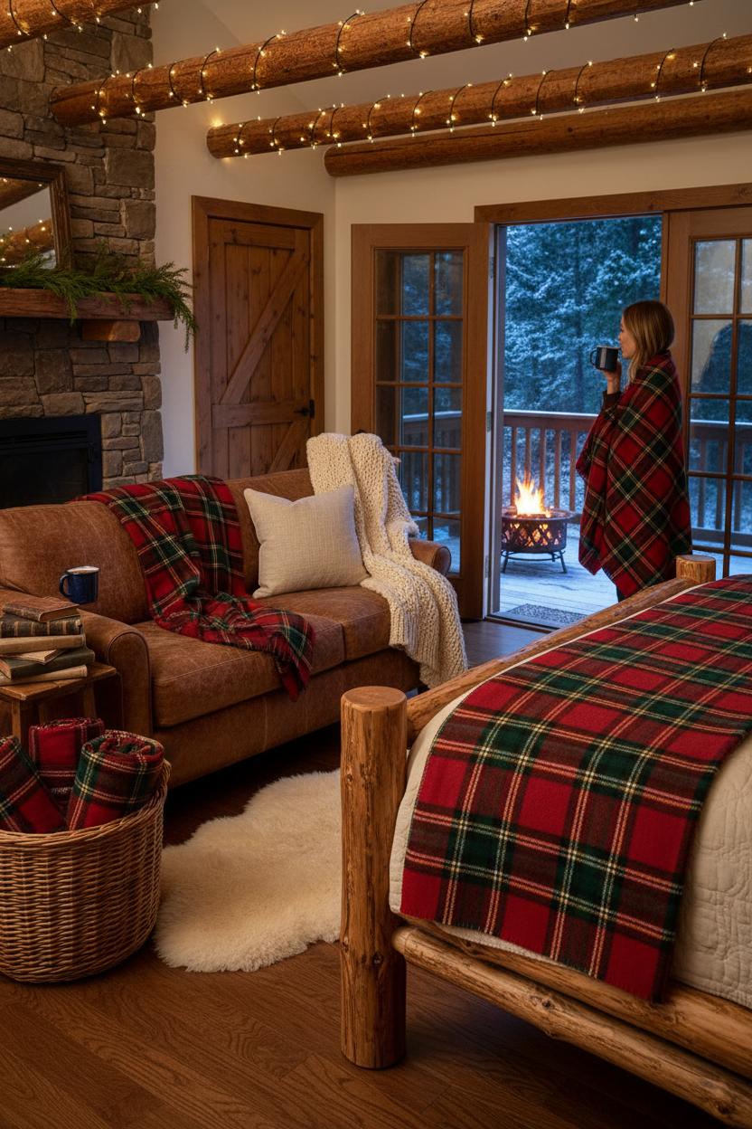 Layers of Warmth: Rustic Cabin Style with a Plaid Wool Blanket