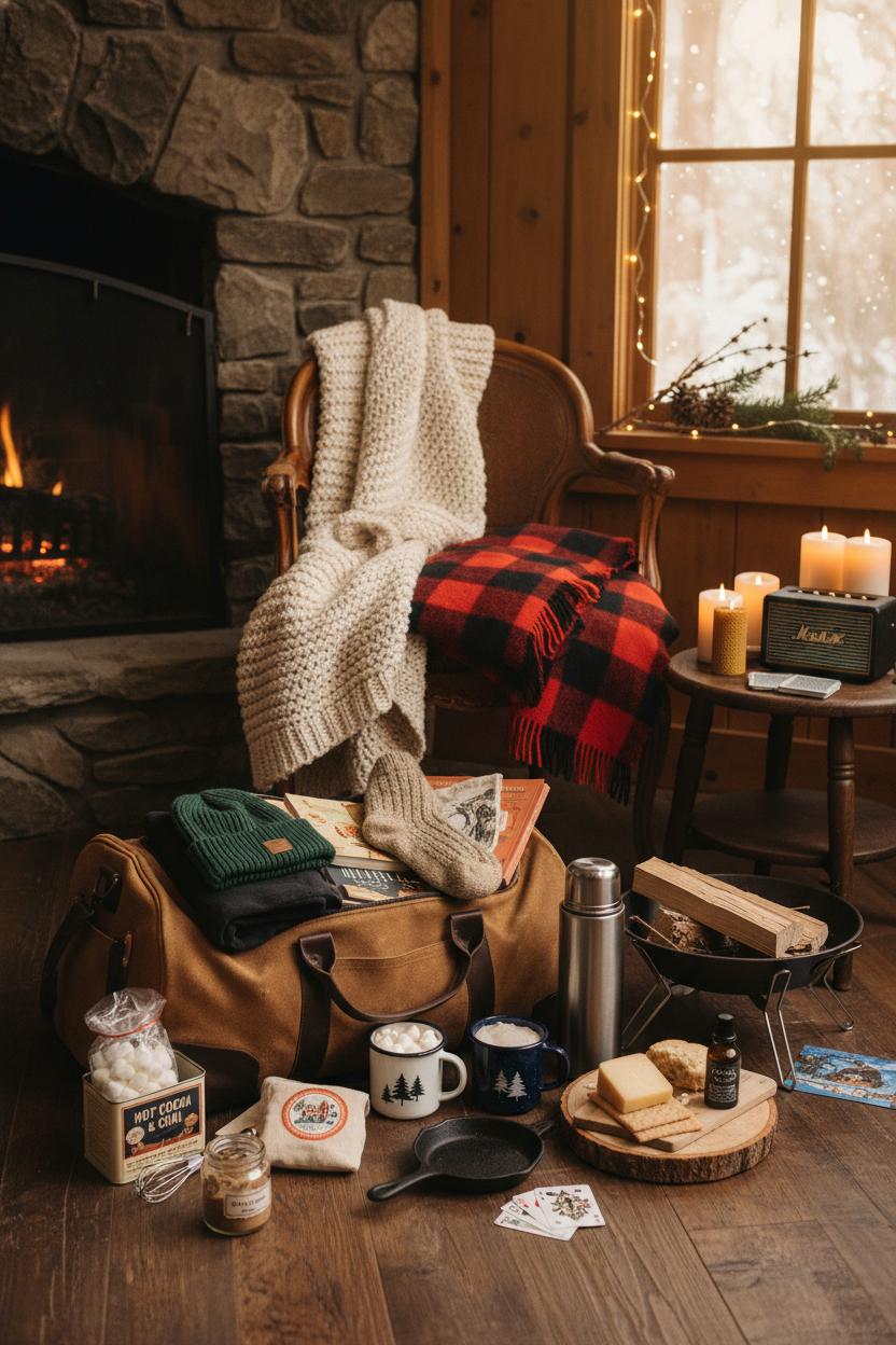 Before you zip up your duffel for a winter weekend trip, think in textures, warmth, and little rituals that make simple moments feel special. Start with textiles: a chunky knit throw to drape over a chair for instant hygge decor, and a plaid wool blanket for fireside layering or wrapping around your shoulders during sunrise coffee. Pack thermal layers, thick socks, and a soft beanie so you’re covered from cabin porch to trail. Tuck in a pair of enamel camp mugs and a tin of cocoa or chai, plus a tiny whisk and marshmallows—because the first sip in a cold, quiet morning is half the magic. For glow without worry, coil battery string lights around a headboard or window for that twinkly, snowglobe feeling. Slip in a small hot water bottle, a book that reads like a hug, and a lavender sachet to tuck into your pillowcase. This is cozy getaway inspo in action: minimal fuss, maximum comfort, and small, sensory moments that feel like a deep exhale.